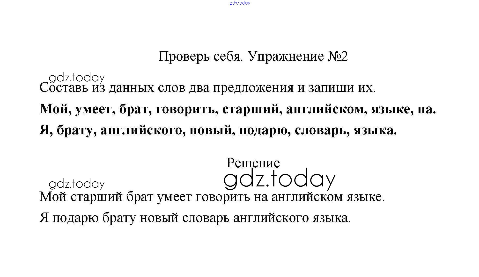 На страницах сайта gdz.today вы найдете учебный и вспомогательный материал, направленный на улучшения знаний школьной программы. ГДЗ - онлайн мир знаний Страница 34 Проверь себя 2 Учебнику по Русскому языку для 2 класса Климанова, Бабушкина Просвещение, Просвещение Перспектива 2015, 2020