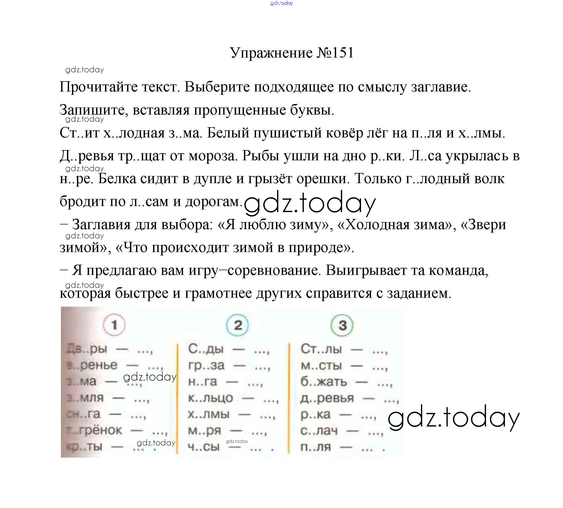На страницах сайта gdz.today вы найдете учебный и вспомогательный материал, направленный на улучшения знаний школьной программы. ГДЗ - онлайн мир знаний Упражнения Решение. Часть 1 151 Учебнику по Русскому языку для 2 класса Климанова, Бабушкина Просвещение, Просвещение Перспектива 2015, 2020
