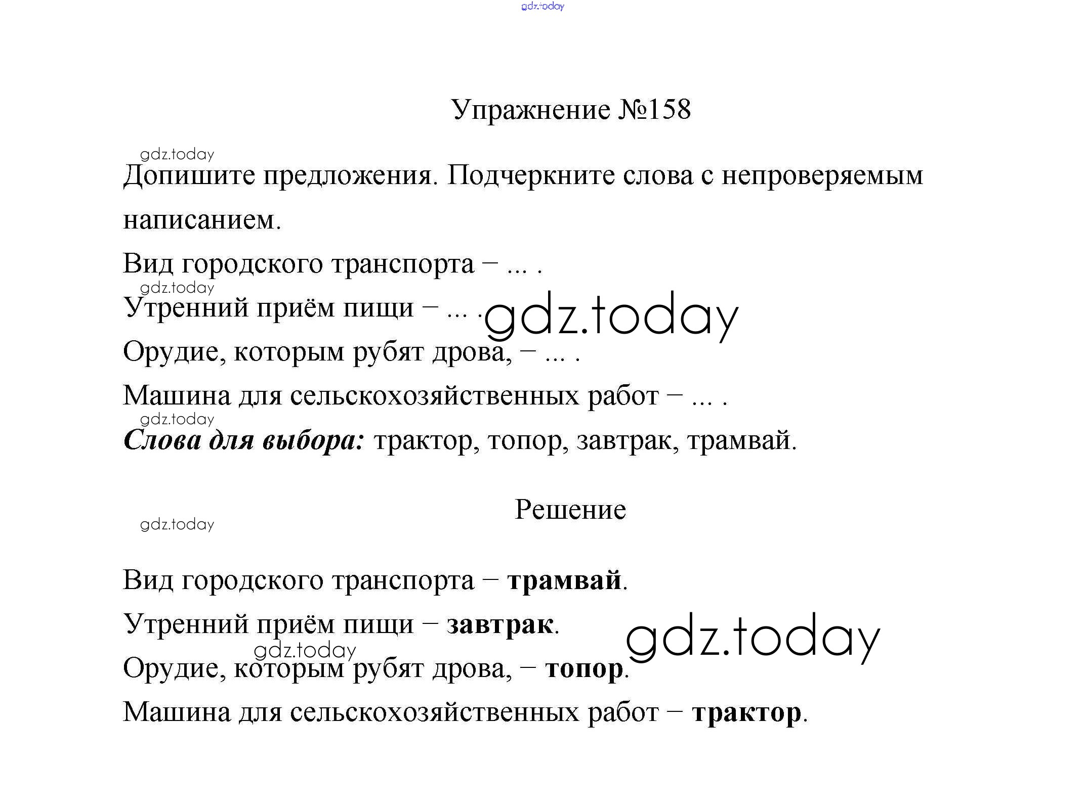 На страницах сайта gdz.today вы найдете учебный и вспомогательный материал, направленный на улучшения знаний школьной программы. ГДЗ - онлайн мир знаний Упражнения Решение. Часть 1 158 Учебнику по Русскому языку для 2 класса Климанова, Бабушкина Просвещение, Просвещение Перспектива 2015, 2020