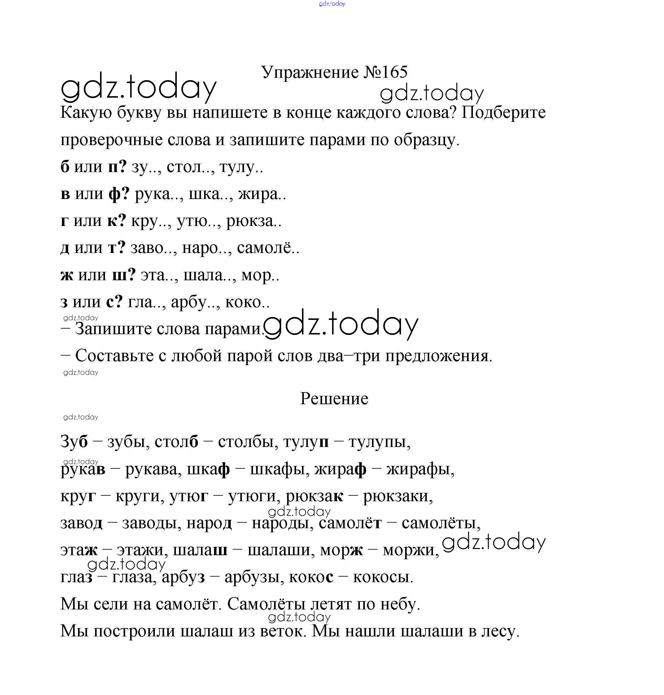 Ответы к Упражнения Решение. Часть 1 165 Учебнику по Русскому языку для 2 класса Климанова, Бабушкина Просвещение, Просвещение Перспектива 2015, 2020