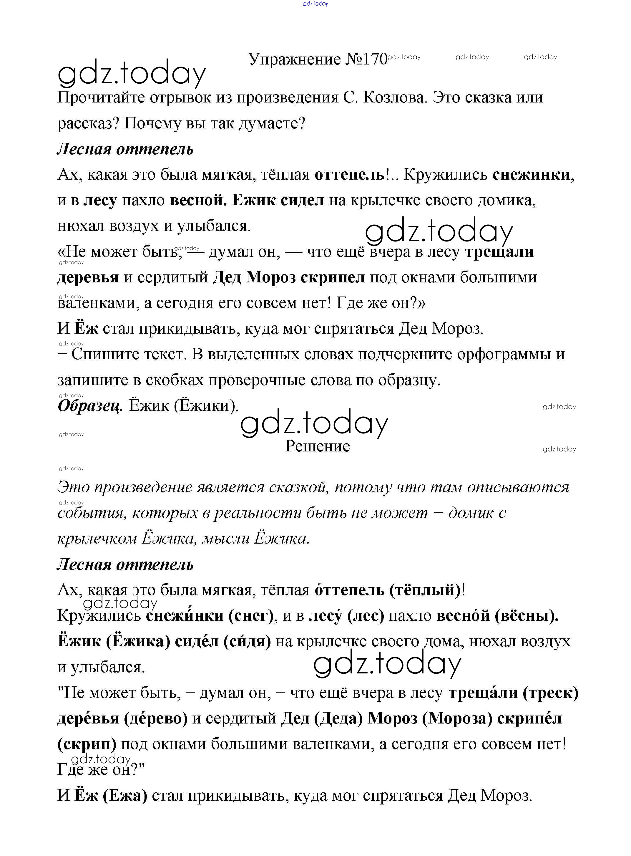 На страницах сайта gdz.today вы найдете учебный и вспомогательный материал, направленный на улучшения знаний школьной программы. ГДЗ - онлайн мир знаний Упражнения Решение. Часть 1 170 Учебнику по Русскому языку для 2 класса Климанова, Бабушкина  Просвещение, Просвещение Перспектива 2015, 2020