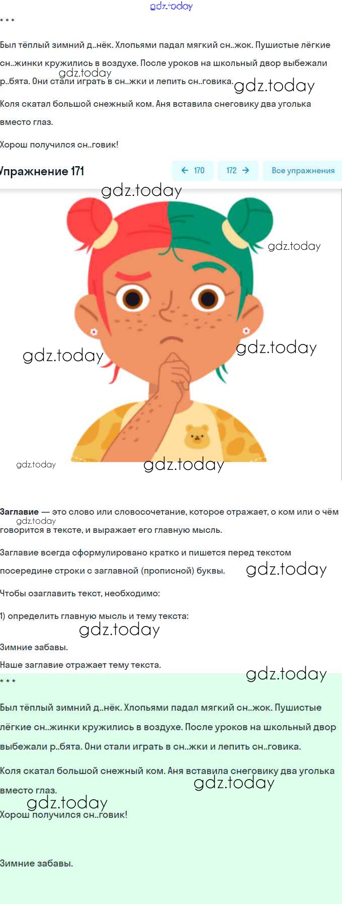 На страницах сайта gdz.today вы найдете учебный и вспомогательный материал, направленный на улучшения знаний школьной программы. ГДЗ - онлайн мир знаний Упражнения Решение. Часть 1 171 Учебнику по Русскому языку для 2 класса Климанова, Бабушкина  Просвещение, Просвещение Перспектива 2015, 2020