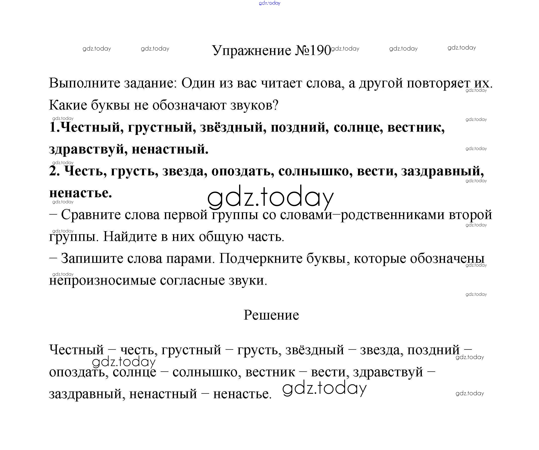 Ответы к Упражнения Решение. Часть 1 190 Учебнику по Русскому языку для 2 класса Климанова, Бабушкина Просвещение, Просвещение Перспектива 2015, 2020