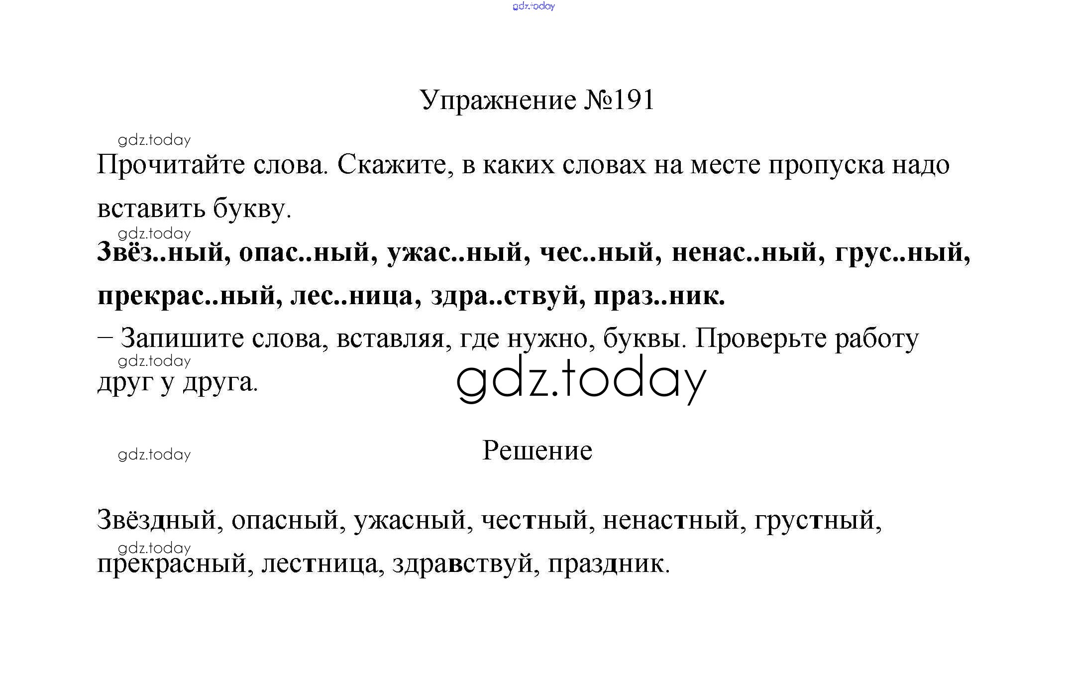 На страницах сайта gdz.today вы найдете учебный и вспомогательный материал, направленный на улучшения знаний школьной программы. ГДЗ - онлайн мир знаний Упражнения Решение. Часть 1 191 Учебнику по Русскому языку для 2 класса Климанова, Бабушкина Просвещение, Просвещение Перспектива 2015, 2020