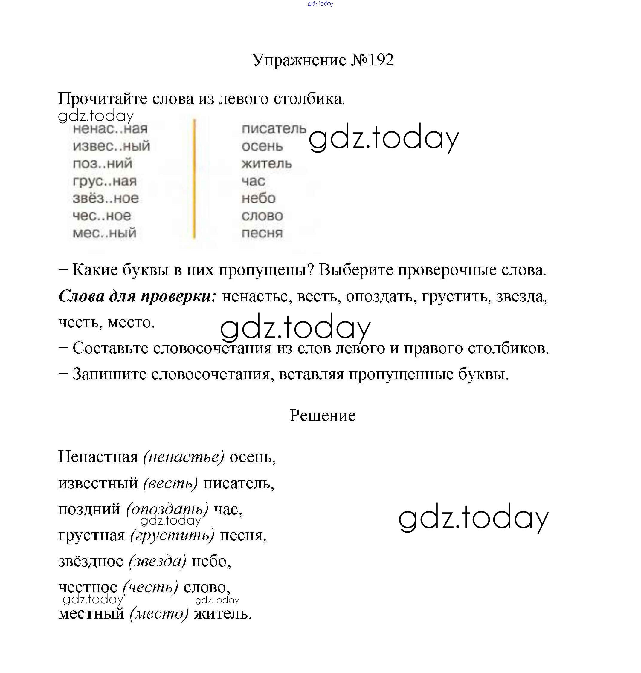 Ответы к Упражнения Решение. Часть 1 192 Учебнику по Русскому языку для 2 класса Климанова, Бабушкина Просвещение, Просвещение Перспектива 2015, 2020