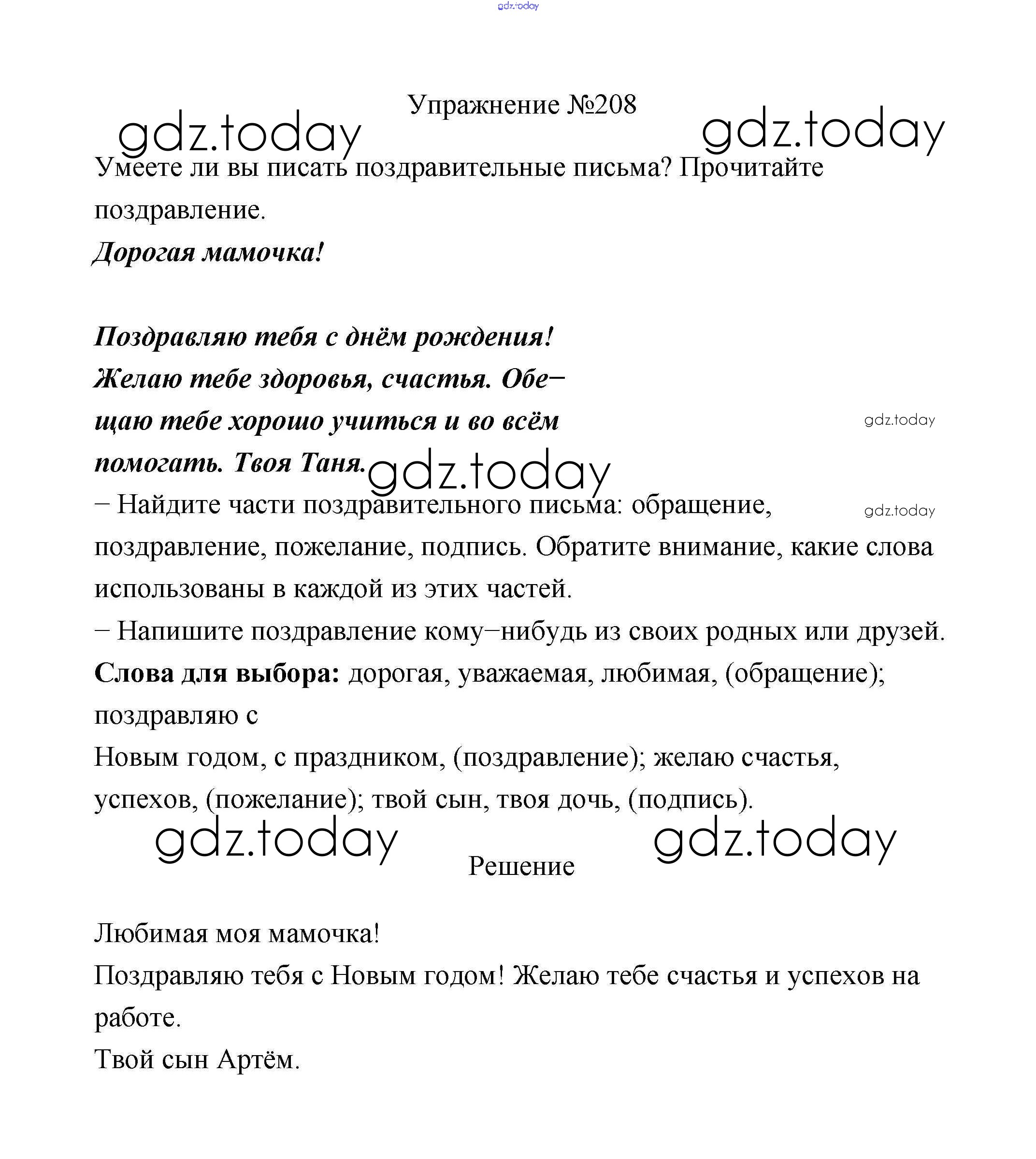 На страницах сайта gdz.today вы найдете учебный и вспомогательный материал, направленный на улучшения знаний школьной программы. ГДЗ - онлайн мир знаний Упражнения Решение. Часть 1 208 Учебнику по Русскому языку для 2 класса Климанова, Бабушкина  Просвещение, Просвещение Перспектива 2015, 2020