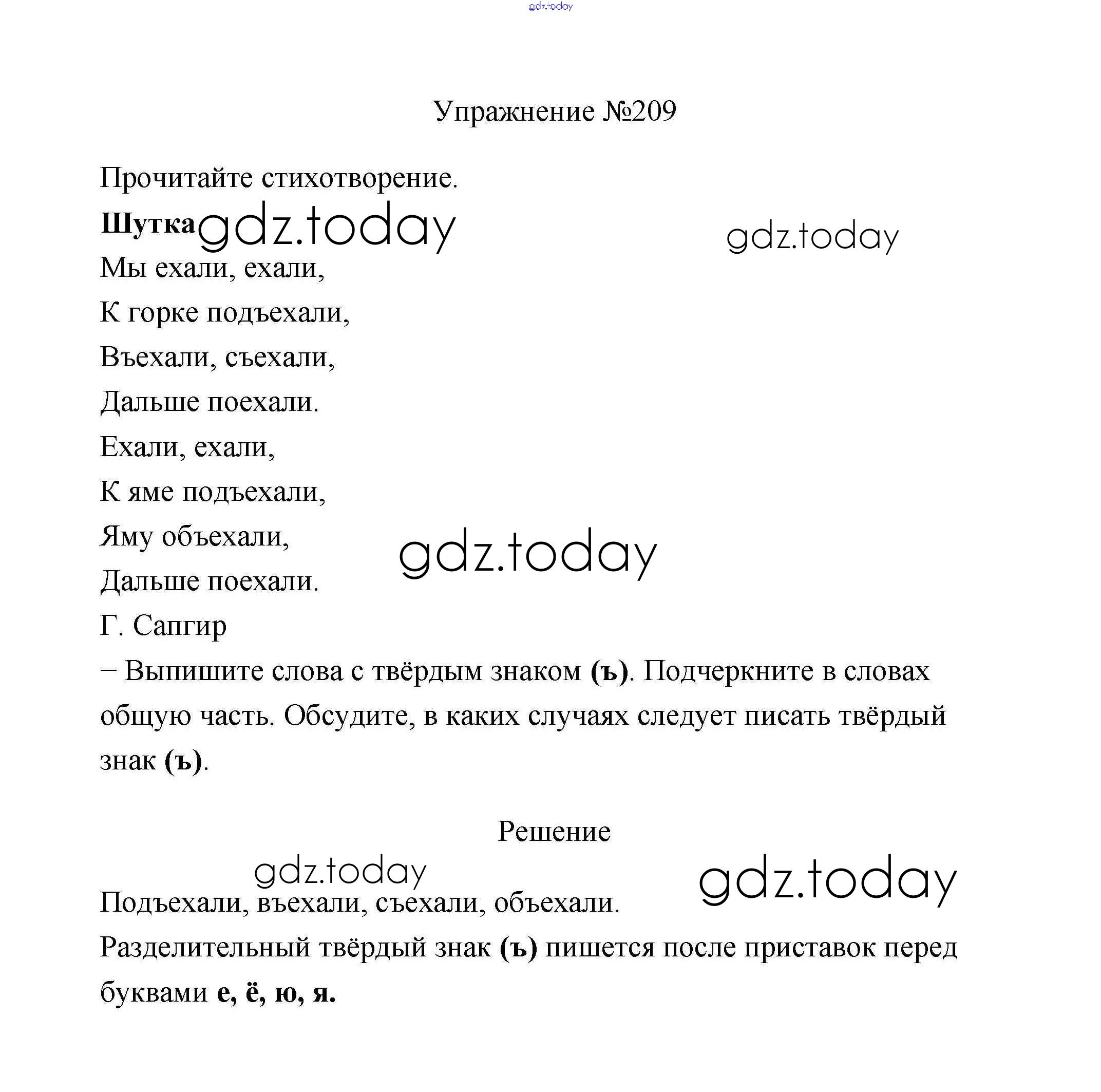 На страницах сайта gdz.today вы найдете учебный и вспомогательный материал, направленный на улучшения знаний школьной программы. ГДЗ - онлайн мир знаний Упражнения Решение. Часть 1 209 Учебнику по Русскому языку для 2 класса Климанова, Бабушкина  Просвещение, Просвещение Перспектива 2015, 2020