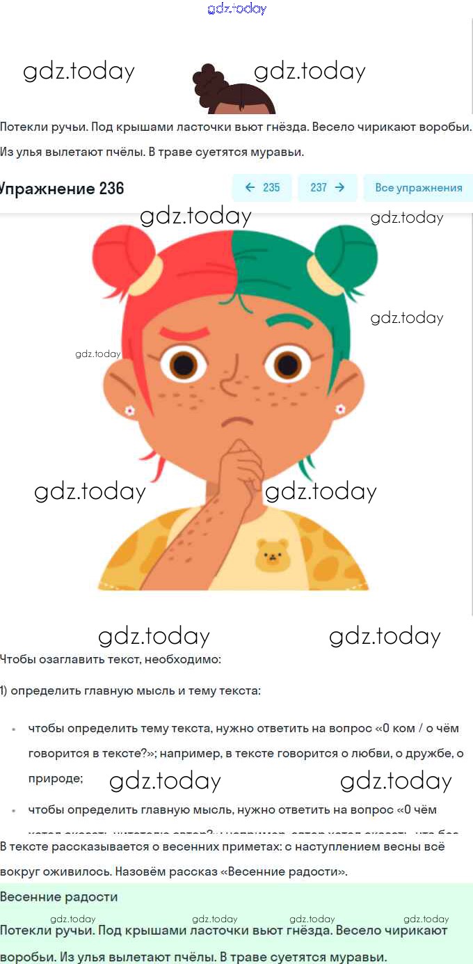 На страницах сайта gdz.today вы найдете учебный и вспомогательный материал, направленный на улучшения знаний школьной программы. ГДЗ - онлайн мир знаний Упражнения Решение. Часть 1 236 Учебнику по Русскому языку для 2 класса Климанова, Бабушкина Просвещение, Просвещение Перспектива 2015, 2020