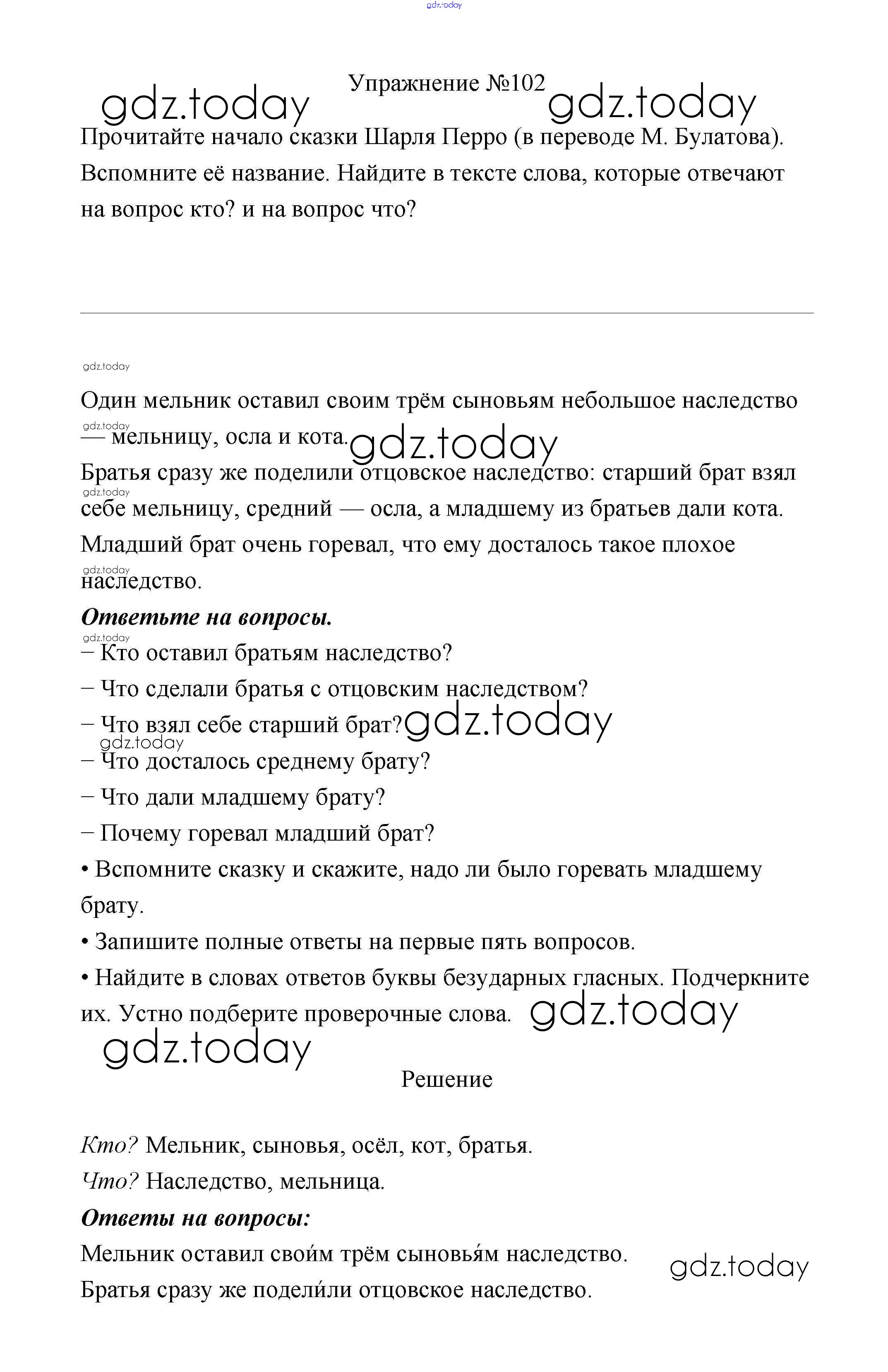 Ответы к Упражнения Решение. Часть 2 102 Учебнику по Русскому языку для 2 класса Климанова, Бабушкина Просвещение, Просвещение Перспектива 2015, 2020