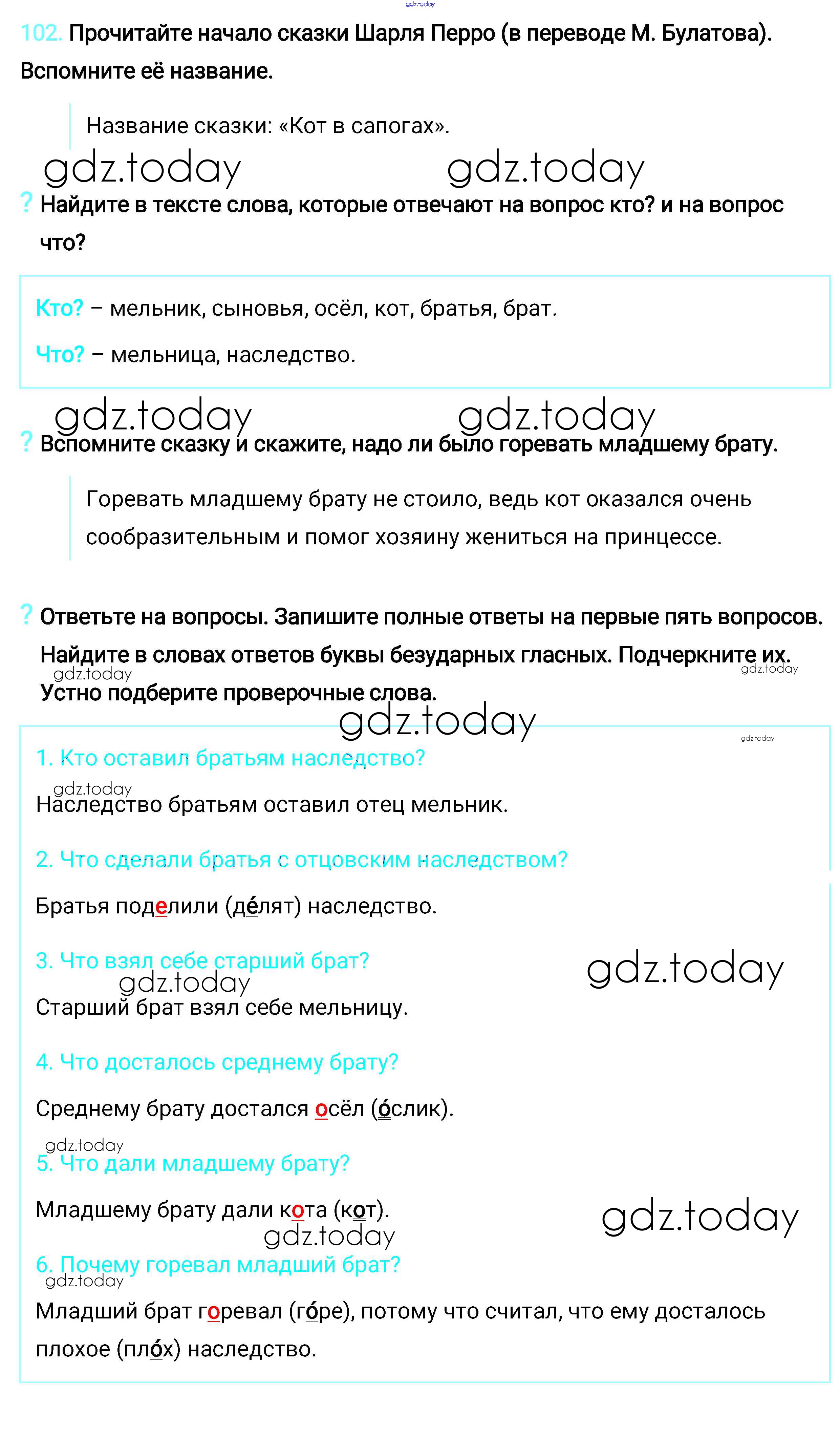 На страницах сайта gdz.today вы найдете учебный и вспомогательный материал, направленный на улучшения знаний школьной программы. ГДЗ - онлайн мир знаний Упражнения Решение. Часть 2 102 Учебнику по Русскому языку для 2 класса Климанова, Бабушкина Просвещение, Просвещение Перспектива 2015, 2020