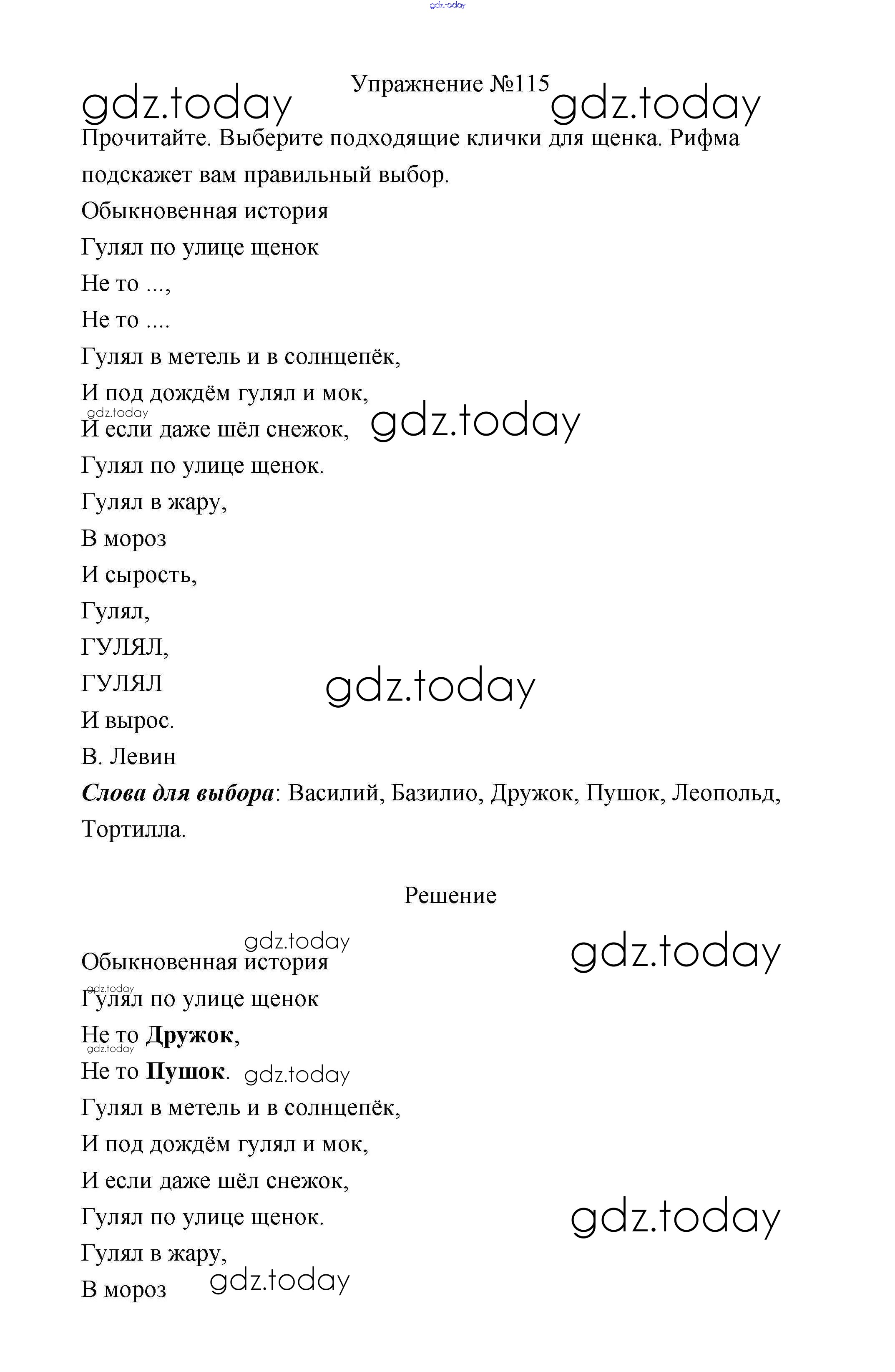 На страницах сайта gdz.today вы найдете учебный и вспомогательный материал, направленный на улучшения знаний школьной программы. ГДЗ - онлайн мир знаний Упражнения Решение. Часть 2 115 Учебнику по Русскому языку для 2 класса Климанова, Бабушкина Просвещение, Просвещение Перспектива 2015, 2020