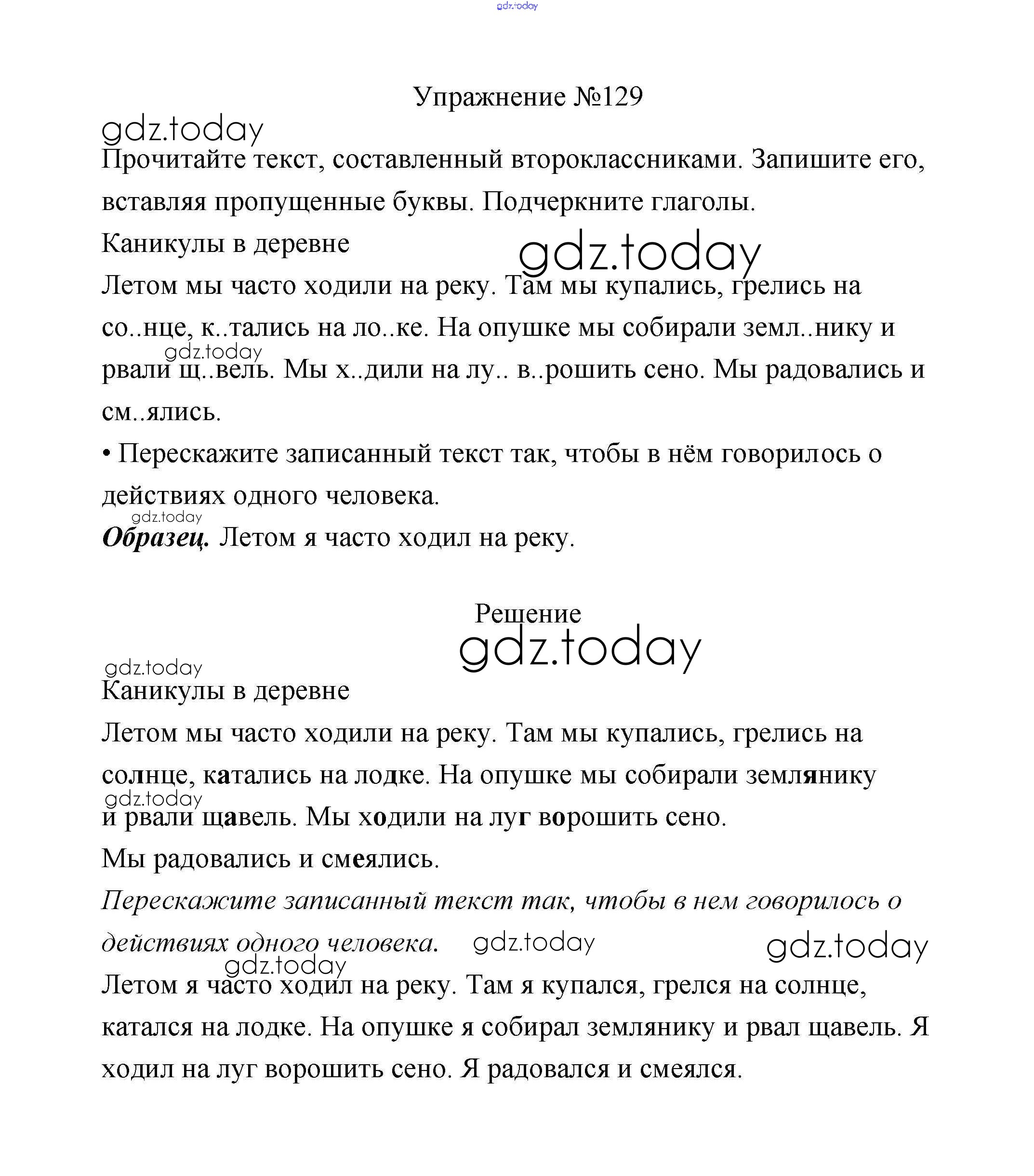 На страницах сайта gdz.today вы найдете учебный и вспомогательный материал, направленный на улучшения знаний школьной программы. ГДЗ - онлайн мир знаний Упражнения Решение. Часть 2 129 Учебнику по Русскому языку для 2 класса Климанова, Бабушкина Просвещение, Просвещение Перспектива 2015, 2020
