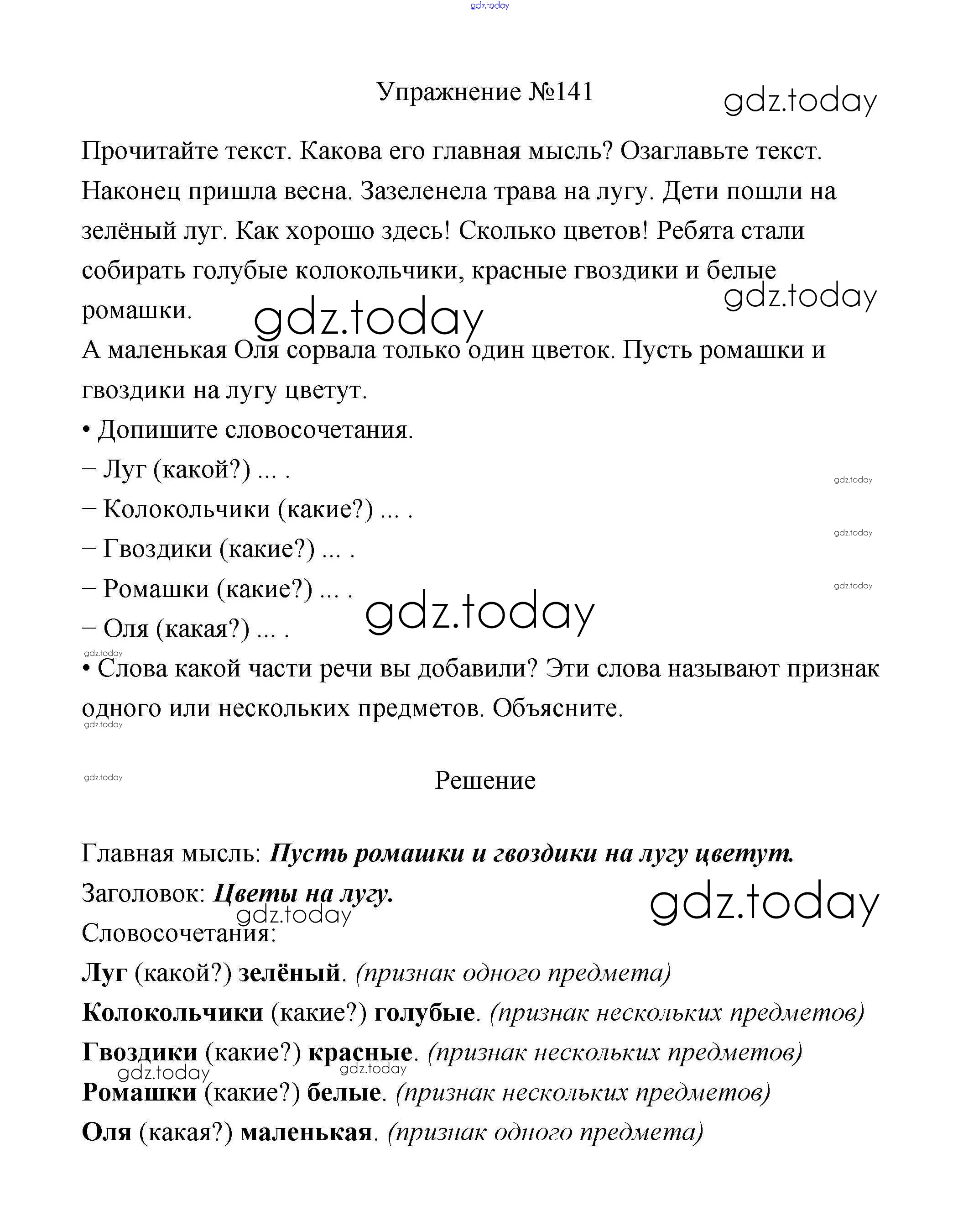 На страницах сайта gdz.today вы найдете учебный и вспомогательный материал, направленный на улучшения знаний школьной программы. ГДЗ - онлайн мир знаний Упражнения Решение. Часть 2 141 Учебнику по Русскому языку для 2 класса Климанова, Бабушкина Просвещение, Просвещение Перспектива 2015, 2020