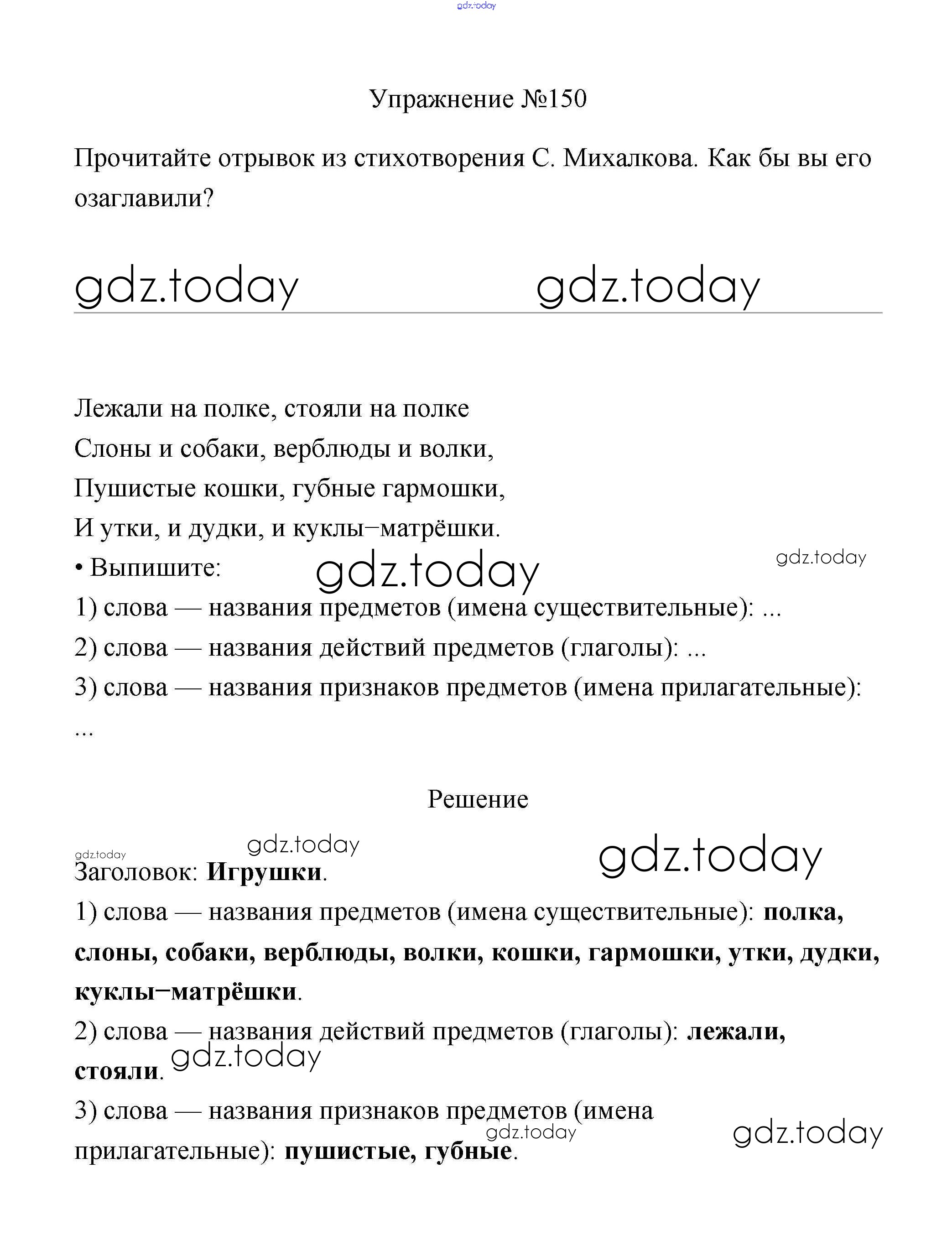 На страницах сайта gdz.today вы найдете учебный и вспомогательный материал, направленный на улучшения знаний школьной программы. ГДЗ - онлайн мир знаний Упражнения Решение. Часть 2 150 Учебнику по Русскому языку для 2 класса Климанова, Бабушкина Просвещение, Просвещение Перспектива 2015, 2020