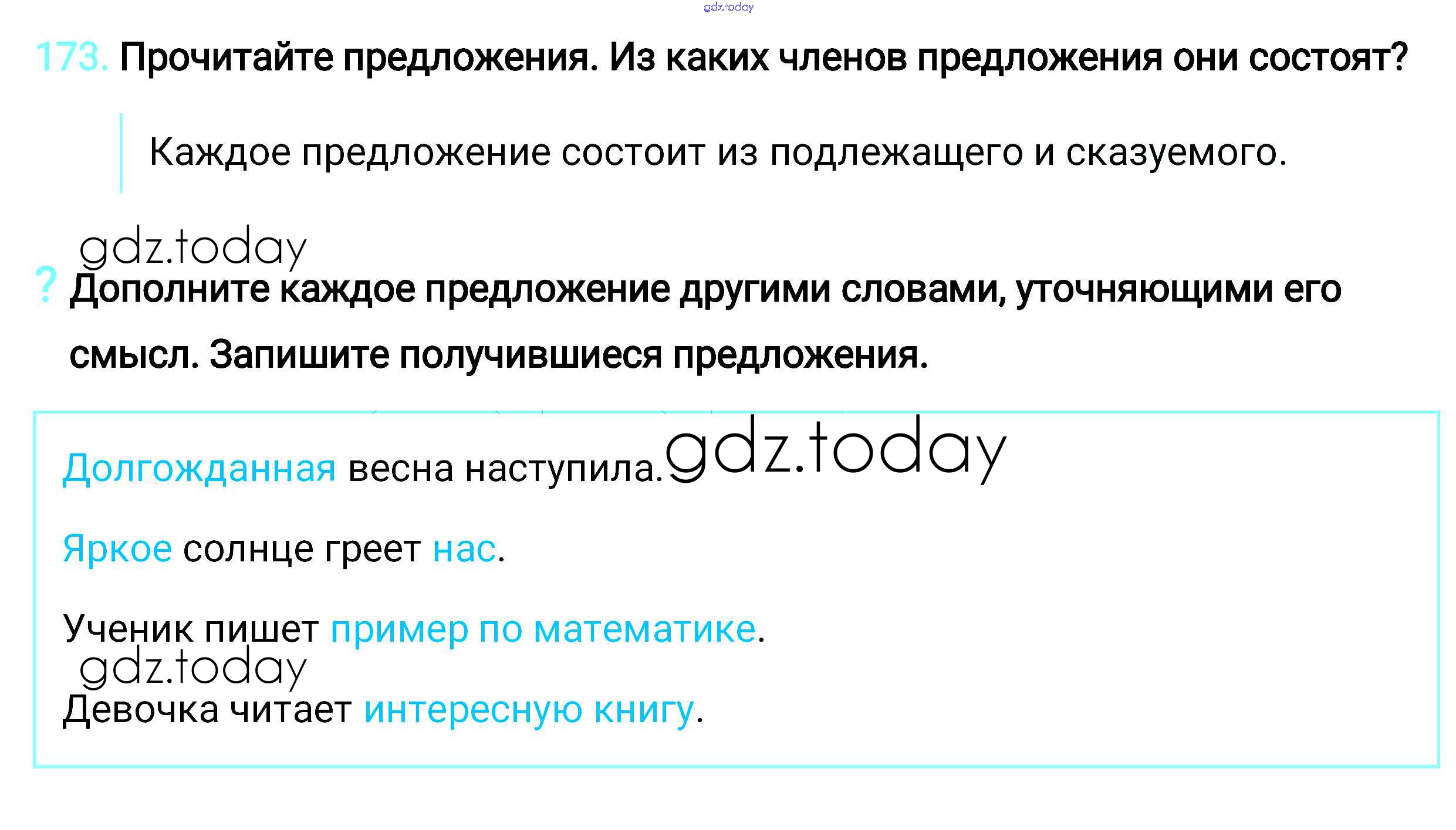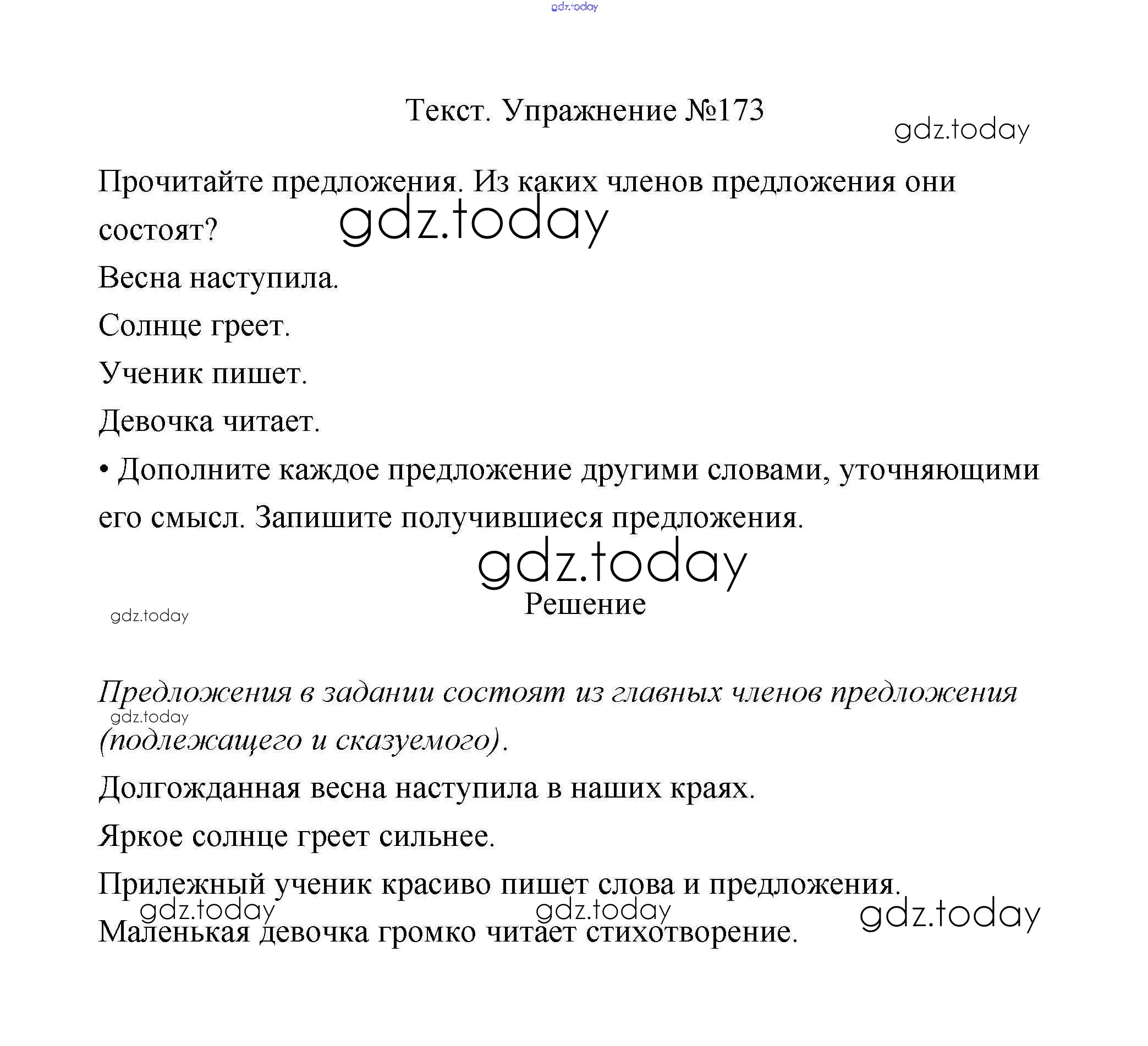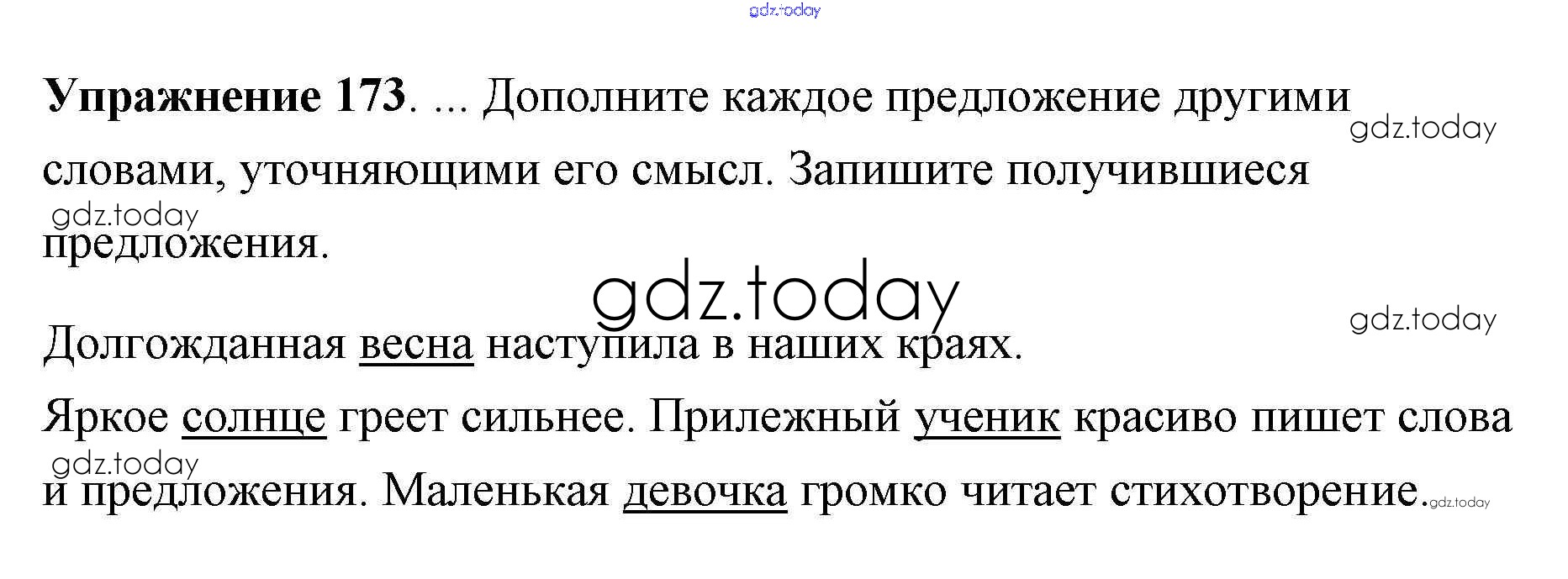 На страницах сайта gdz.today вы найдете учебный и вспомогательный материал, направленный на улучшения знаний школьной программы. ГДЗ - онлайн мир знаний Упражнения Решение. Часть 2 173 Учебнику по Русскому языку для 2 класса Климанова, Бабушкина Просвещение, Просвещение Перспектива 2015, 2020