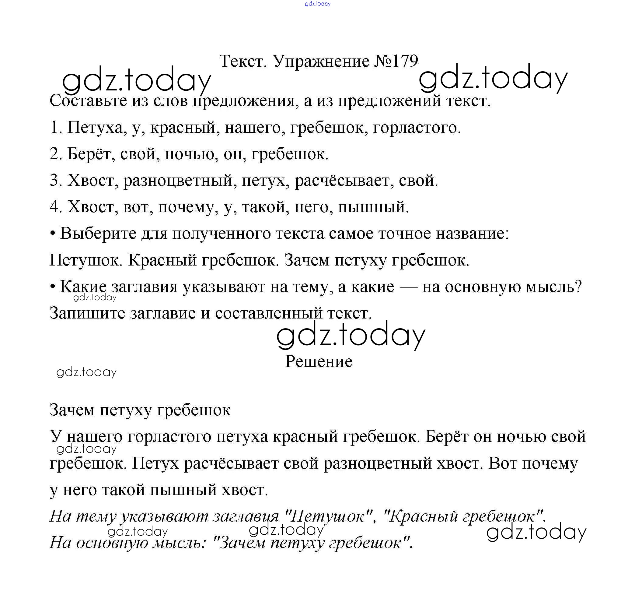 На страницах сайта gdz.today вы найдете учебный и вспомогательный материал, направленный на улучшения знаний школьной программы. ГДЗ - онлайн мир знаний Упражнения Решение. Часть 2 179 Учебнику по Русскому языку для 2 класса Климанова, Бабушкина  Просвещение, Просвещение Перспектива 2015, 2020