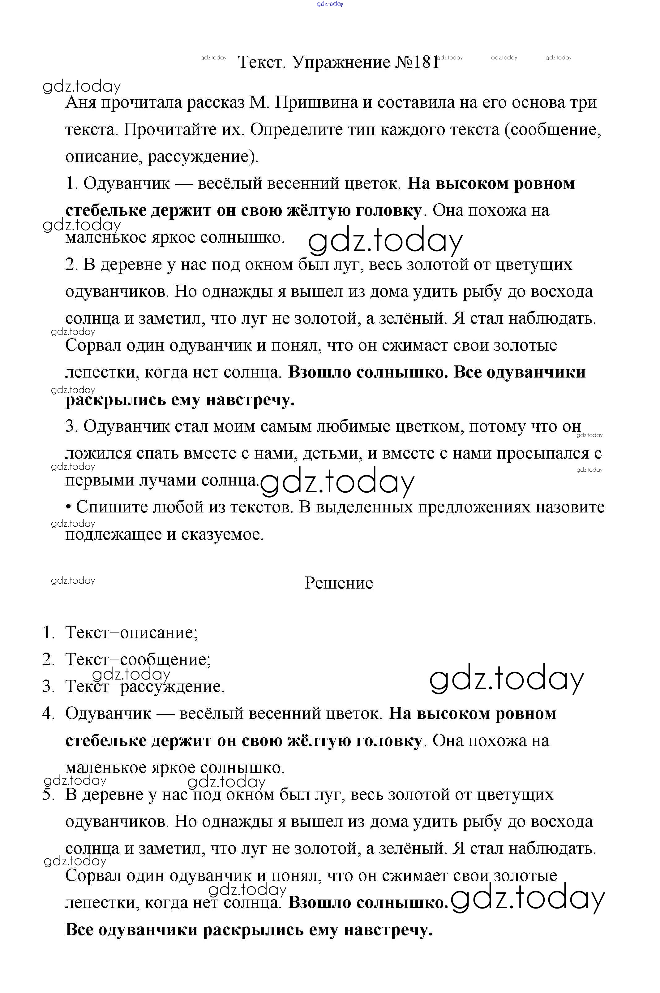 Ответы к Упражнения Решение. Часть 2 181 Учебнику по Русскому языку для 2 класса Климанова, Бабушкина Просвещение, Просвещение Перспектива 2015, 2020