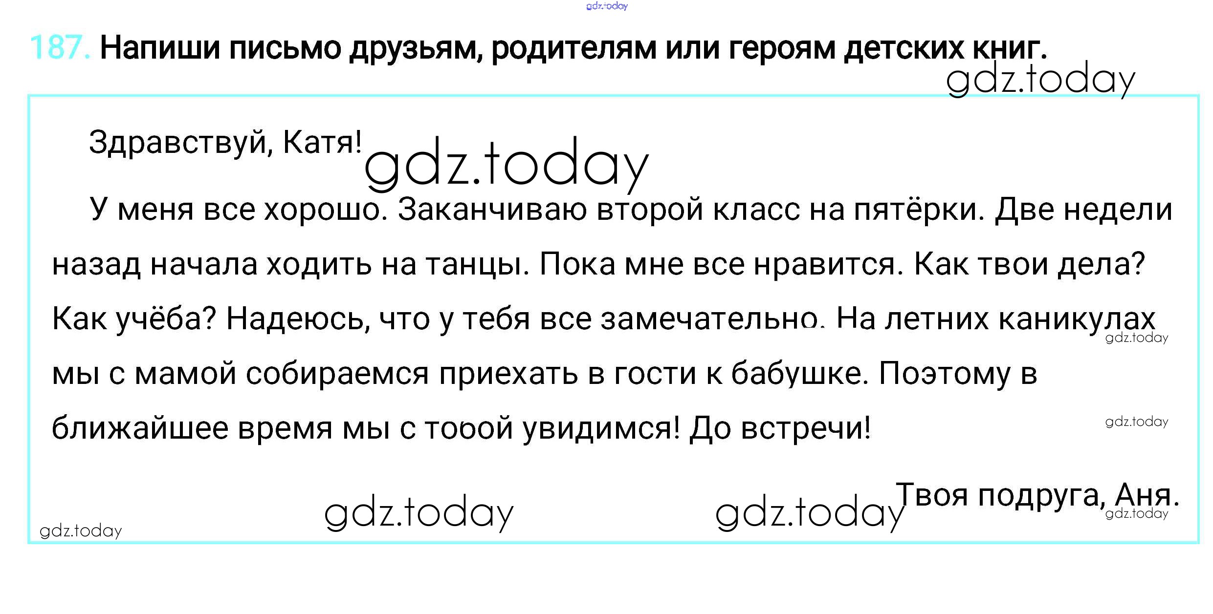 На страницах сайта gdz.today вы найдете учебный и вспомогательный материал, направленный на улучшения знаний школьной программы. ГДЗ - онлайн мир знаний Упражнения Решение. Часть 2 187 Учебнику по Русскому языку для 2 класса Климанова, Бабушкина Просвещение, Просвещение Перспектива 2015, 2020