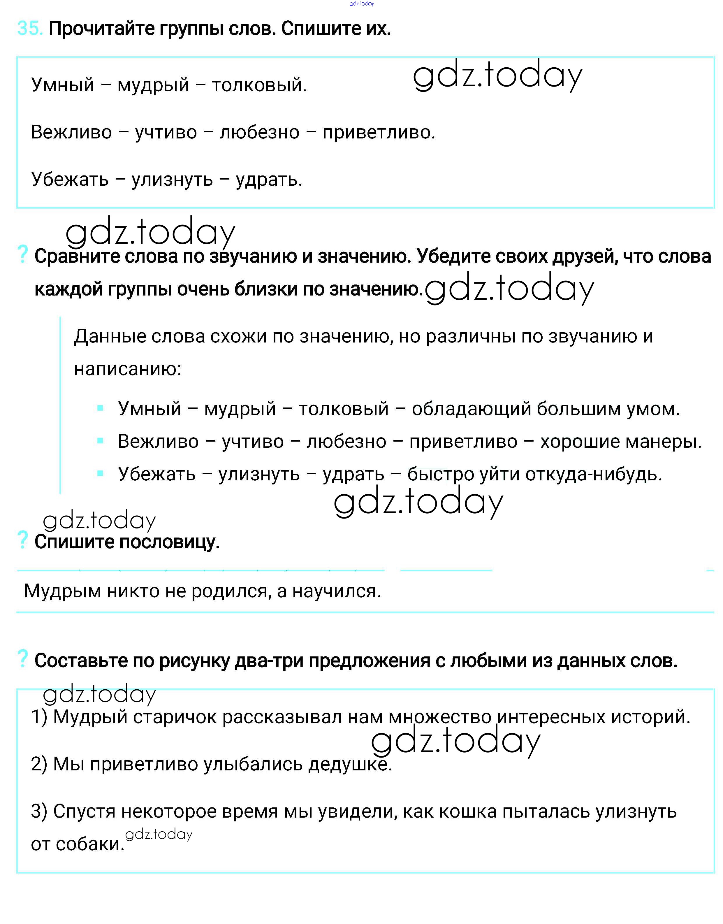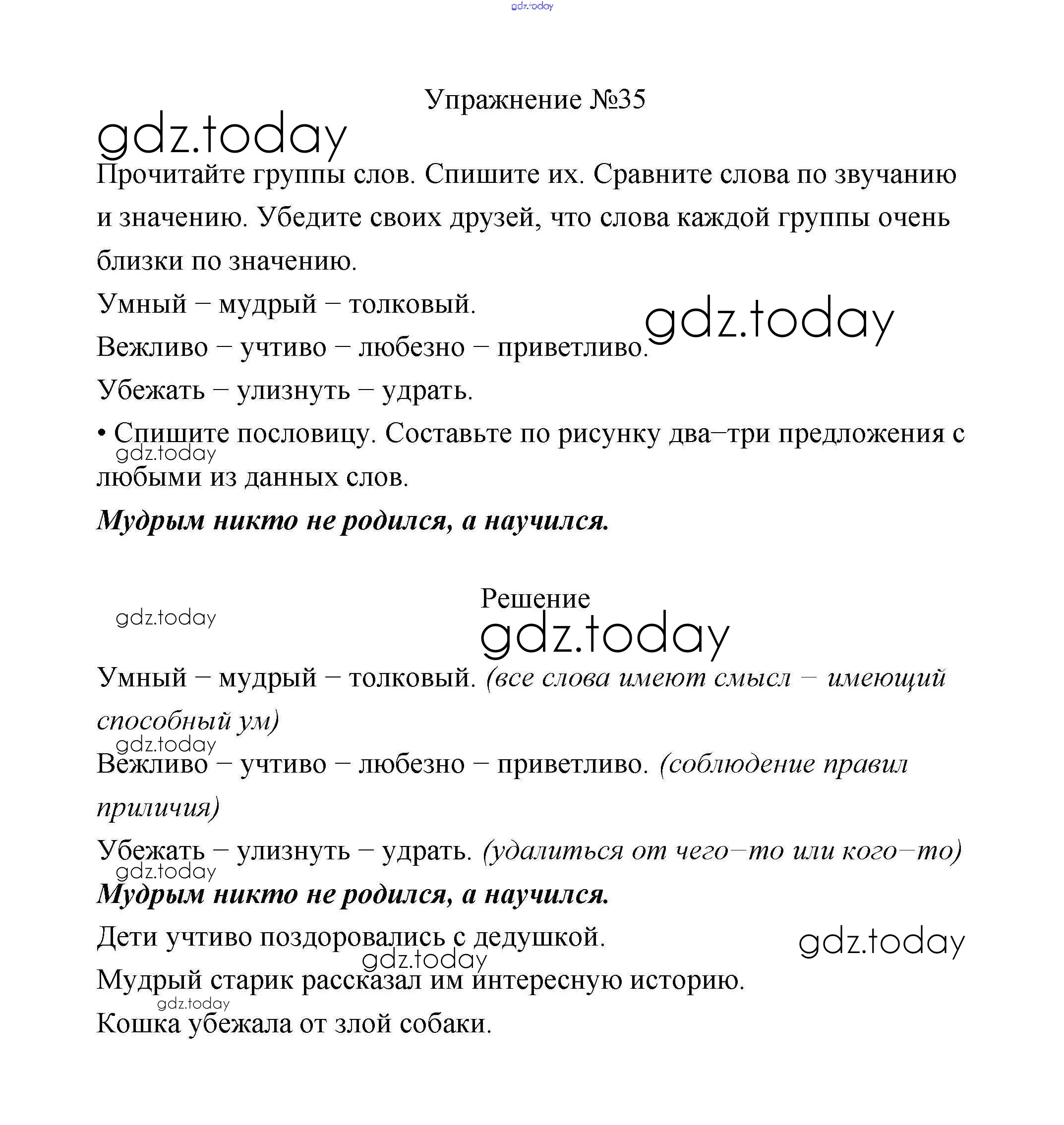 На страницах сайта gdz.today вы найдете учебный и вспомогательный материал, направленный на улучшения знаний школьной программы. ГДЗ - онлайн мир знаний Упражнения Решение. Часть 2 35 Учебнику по Русскому языку для 2 класса Климанова, Бабушкина Просвещение, Просвещение Перспектива 2015, 2020