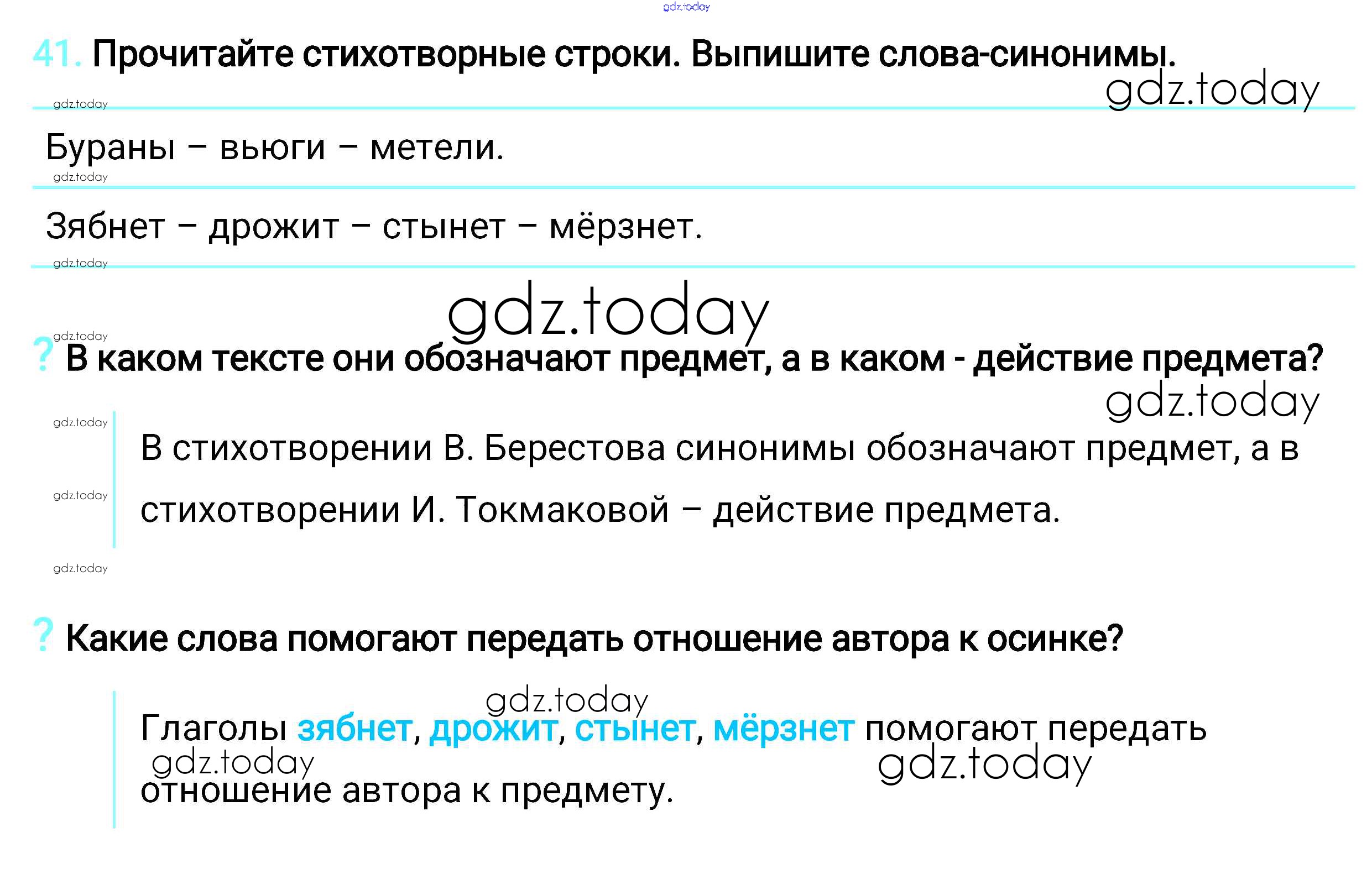 На страницах сайта gdz.today вы найдете учебный и вспомогательный материал, направленный на улучшения знаний школьной программы. ГДЗ - онлайн мир знаний Упражнения Решение. Часть 2 41 Учебнику по Русскому языку для 2 класса Климанова, Бабушкина Просвещение, Просвещение Перспектива 2015, 2020