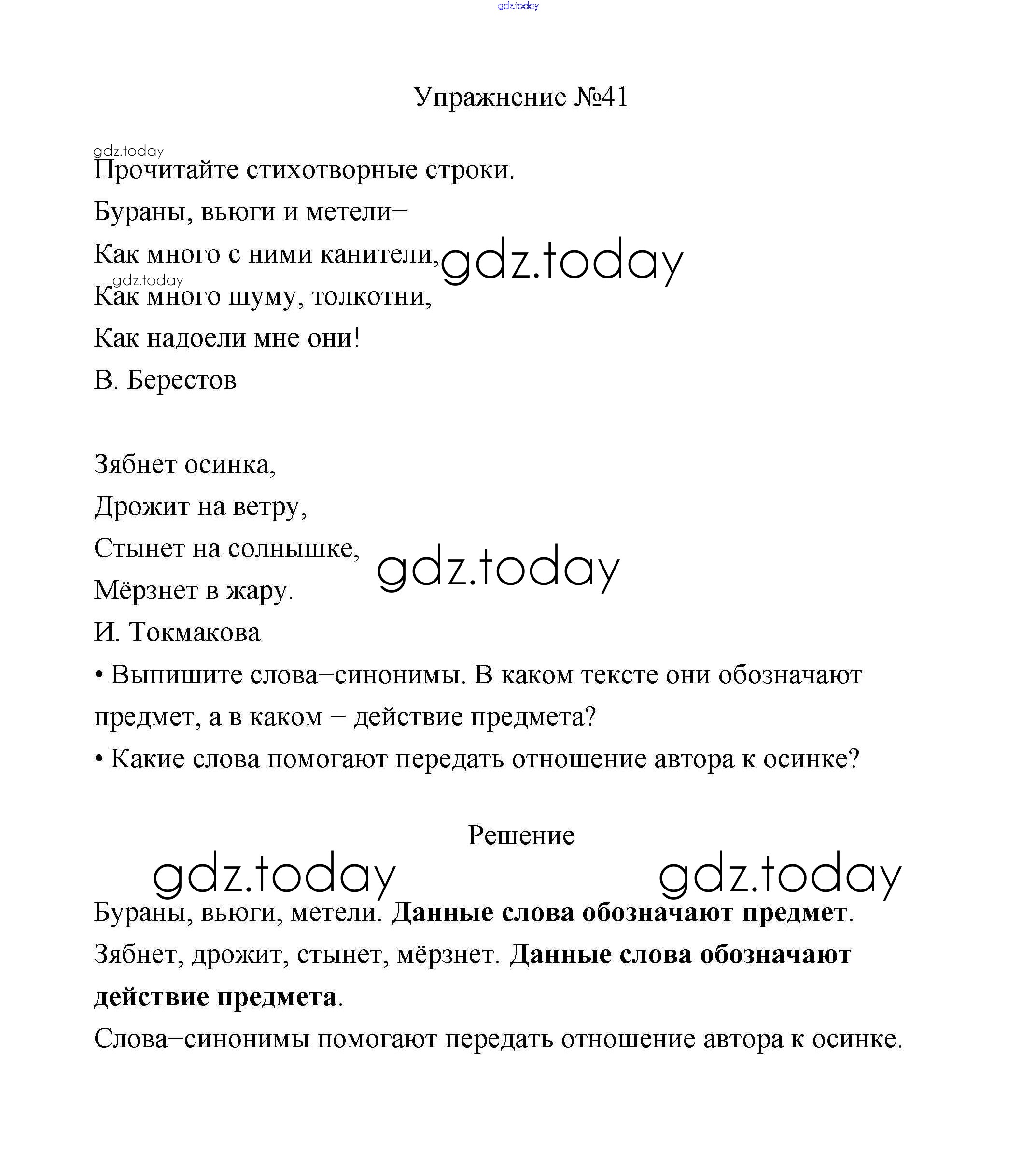 Ответы к Упражнения Решение. Часть 2 41 Учебнику по Русскому языку для 2 класса Климанова, Бабушкина Просвещение, Просвещение Перспектива 2015, 2020