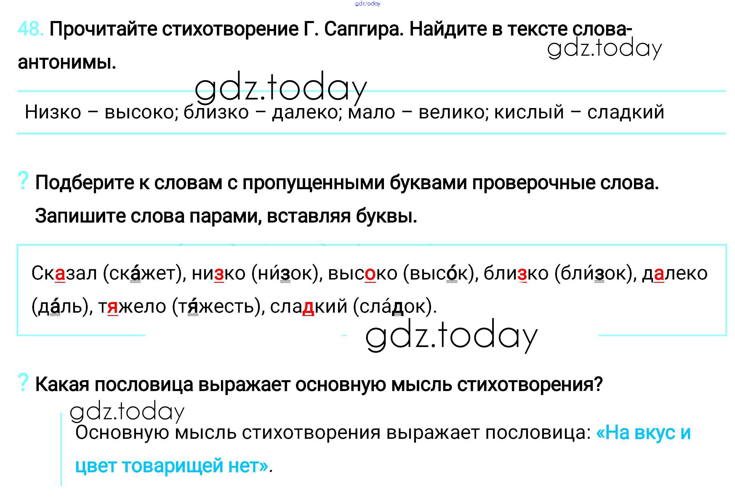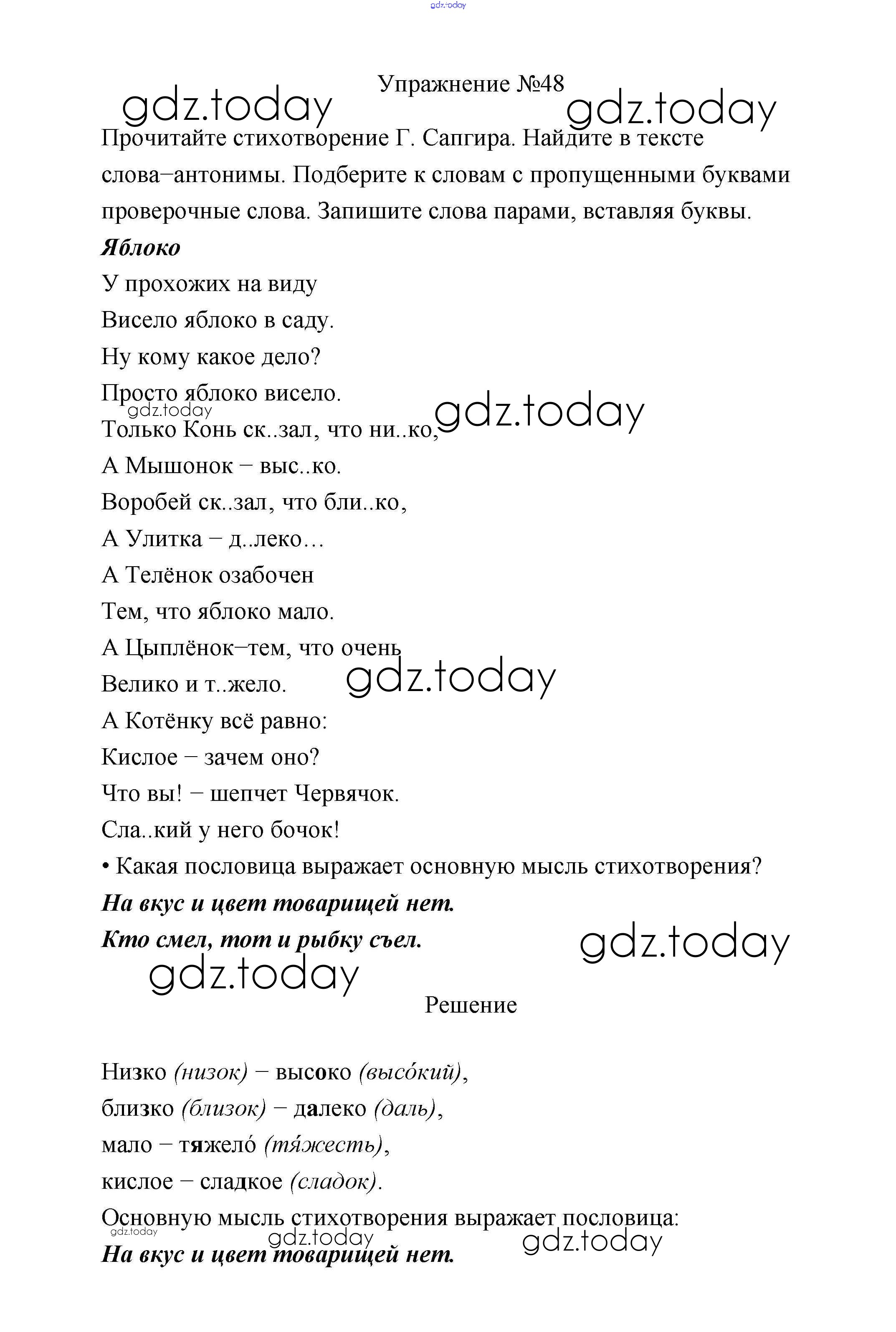 На страницах сайта gdz.today вы найдете учебный и вспомогательный материал, направленный на улучшения знаний школьной программы. ГДЗ - онлайн мир знаний Упражнения Решение. Часть 2 48 Учебнику по Русскому языку для 2 класса Климанова, Бабушкина Просвещение, Просвещение Перспектива 2015, 2020