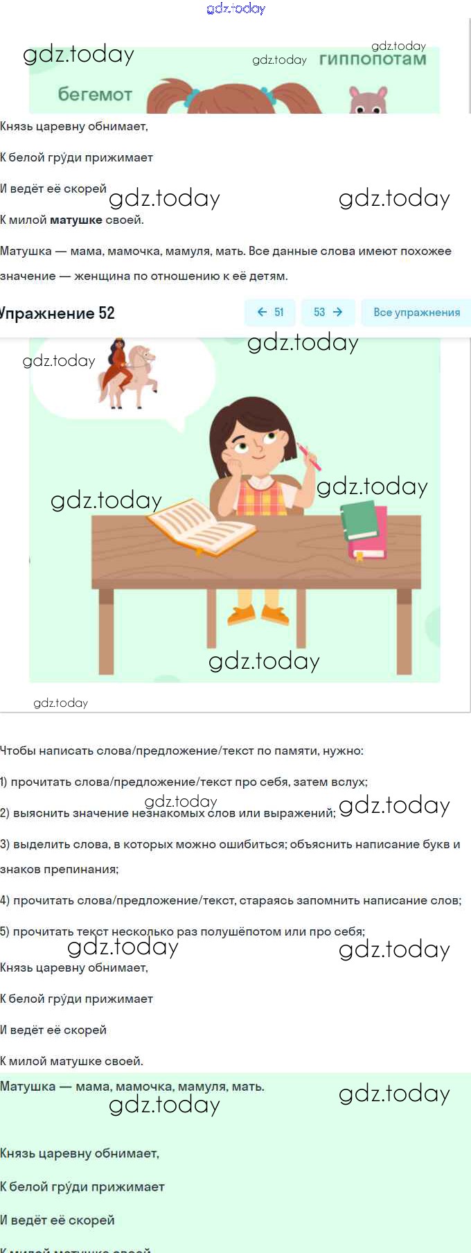На страницах сайта gdz.today вы найдете учебный и вспомогательный материал, направленный на улучшения знаний школьной программы. ГДЗ - онлайн мир знаний Упражнения Решение. Часть 2 52 Учебнику по Русскому языку для 2 класса Климанова, Бабушкина Просвещение, Просвещение Перспектива 2015, 2020