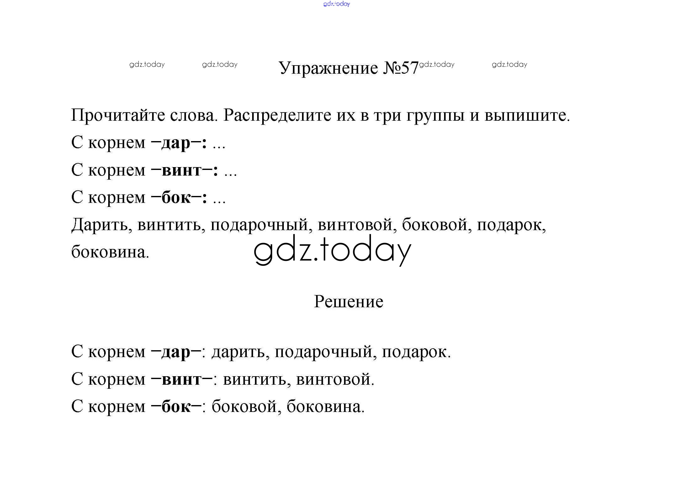 На страницах сайта gdz.today вы найдете учебный и вспомогательный материал, направленный на улучшения знаний школьной программы. ГДЗ - онлайн мир знаний Упражнения Решение. Часть 2 57 Учебнику по Русскому языку для 2 класса Климанова, Бабушкина Просвещение, Просвещение Перспектива 2015, 2020