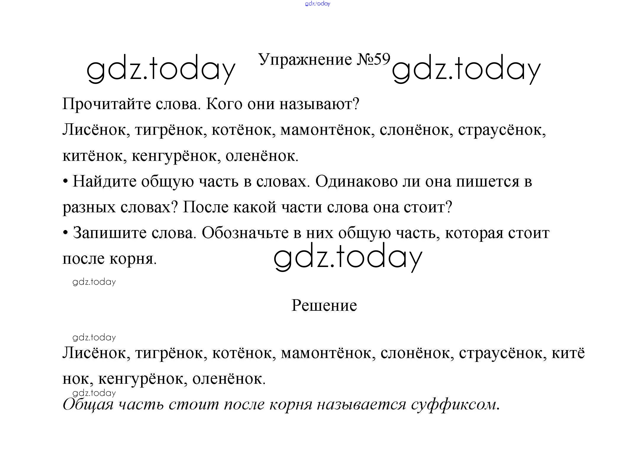На страницах сайта gdz.today вы найдете учебный и вспомогательный материал, направленный на улучшения знаний школьной программы. ГДЗ - онлайн мир знаний Упражнения Решение. Часть 2 59 Учебнику по Русскому языку для 2 класса Климанова, Бабушкина Просвещение, Просвещение Перспектива 2015, 2020