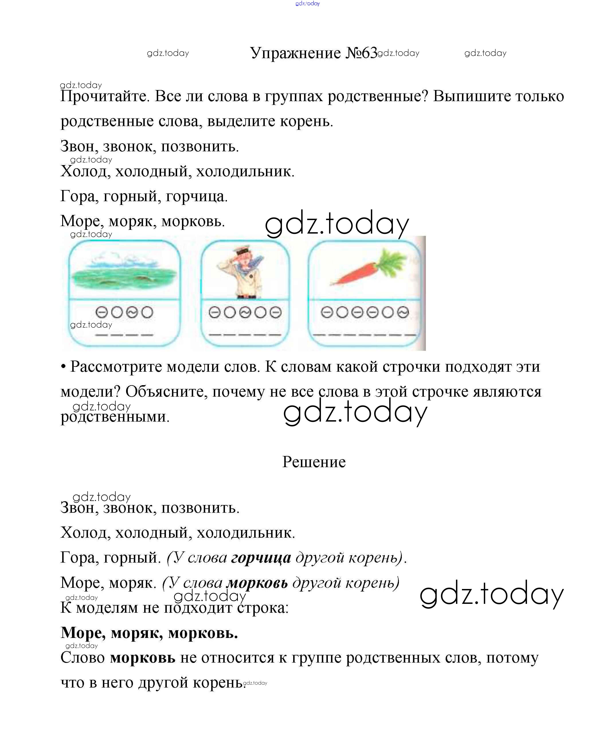 Ответы к Упражнения Решение. Часть 2 63 Учебнику по Русскому языку для 2 класса Климанова, Бабушкина Просвещение, Просвещение Перспектива 2015, 2020