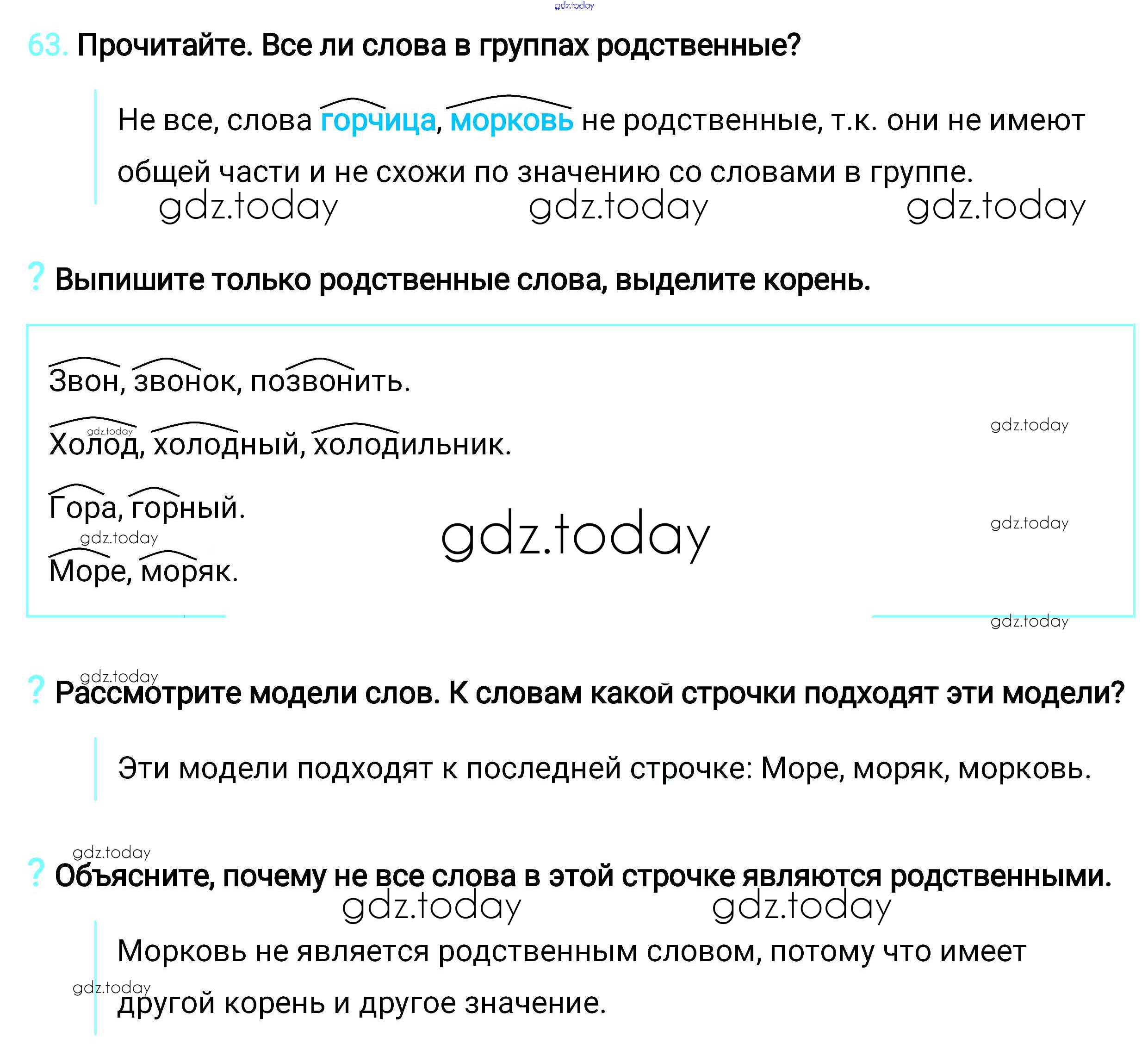 На страницах сайта gdz.today вы найдете учебный и вспомогательный материал, направленный на улучшения знаний школьной программы. ГДЗ - онлайн мир знаний Упражнения Решение. Часть 2 63 Учебнику по Русскому языку для 2 класса Климанова, Бабушкина Просвещение, Просвещение Перспектива 2015, 2020