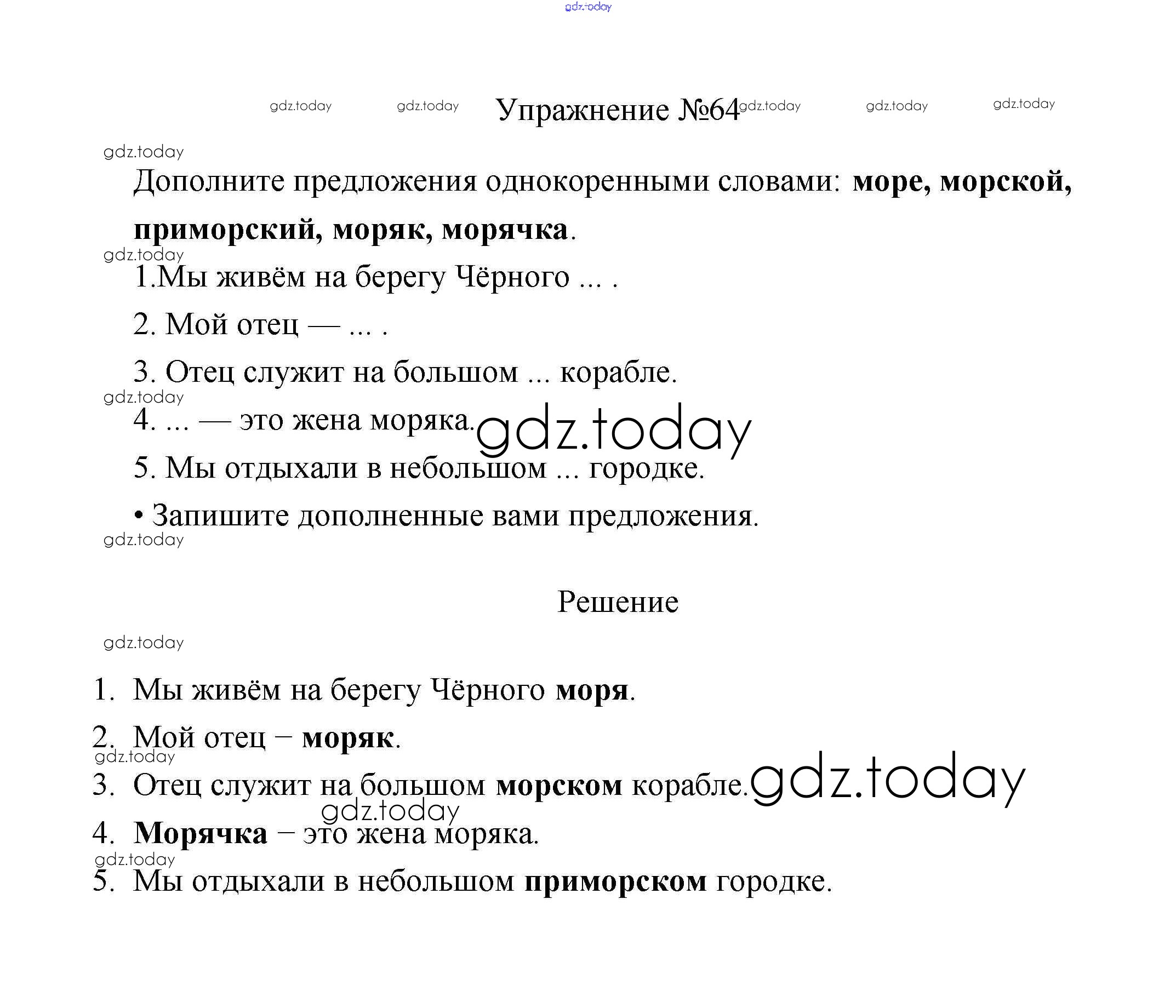На страницах сайта gdz.today вы найдете учебный и вспомогательный материал, направленный на улучшения знаний школьной программы. ГДЗ - онлайн мир знаний Упражнения Решение. Часть 2 64 Учебнику по Русскому языку для 2 класса Климанова, Бабушкина Просвещение, Просвещение Перспектива 2015, 2020