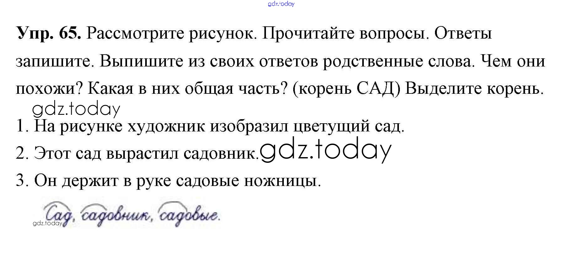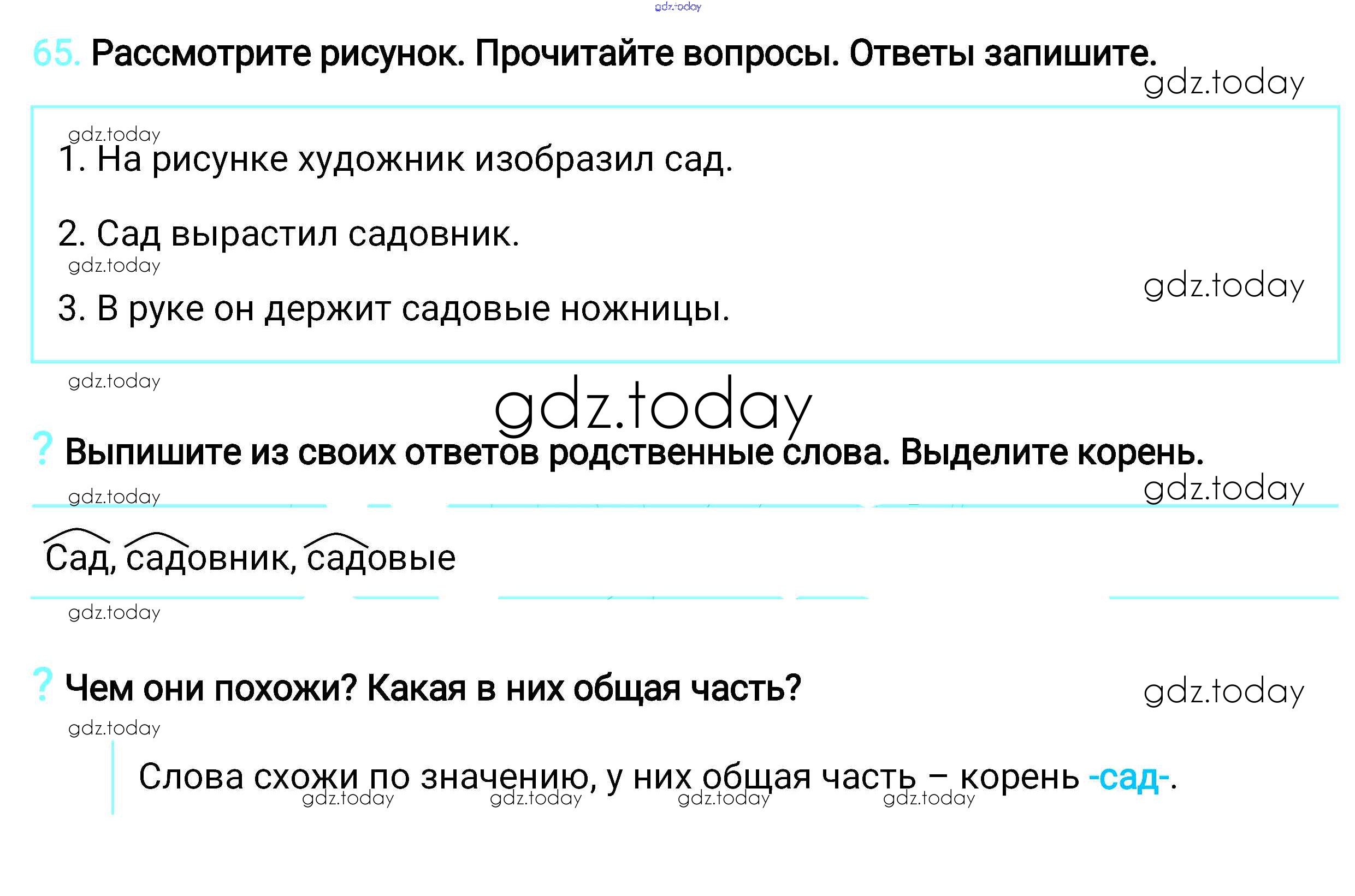 На страницах сайта gdz.today вы найдете учебный и вспомогательный материал, направленный на улучшения знаний школьной программы. ГДЗ - онлайн мир знаний Упражнения Решение. Часть 2 65 Учебнику по Русскому языку для 2 класса Климанова, Бабушкина Просвещение, Просвещение Перспектива 2015, 2020