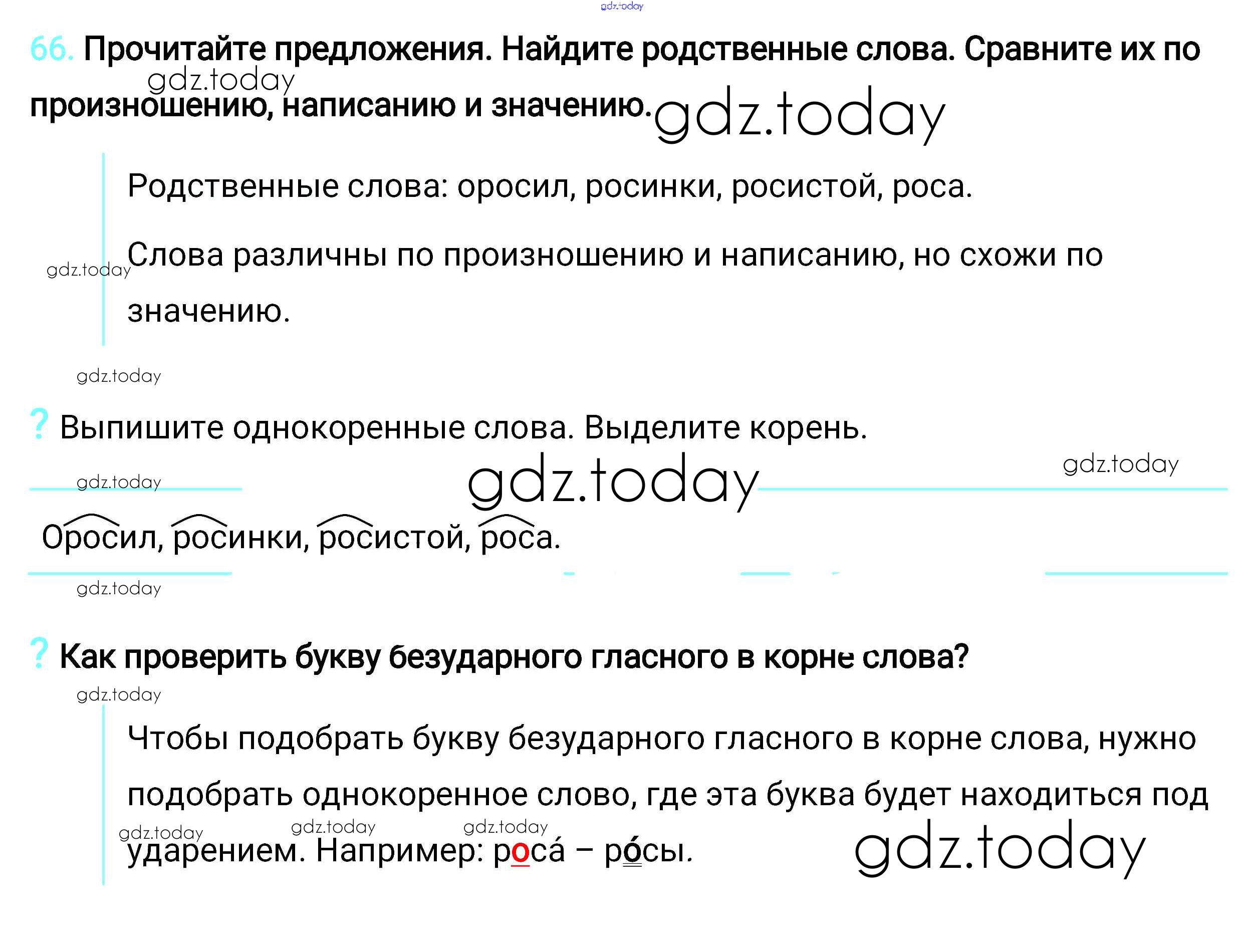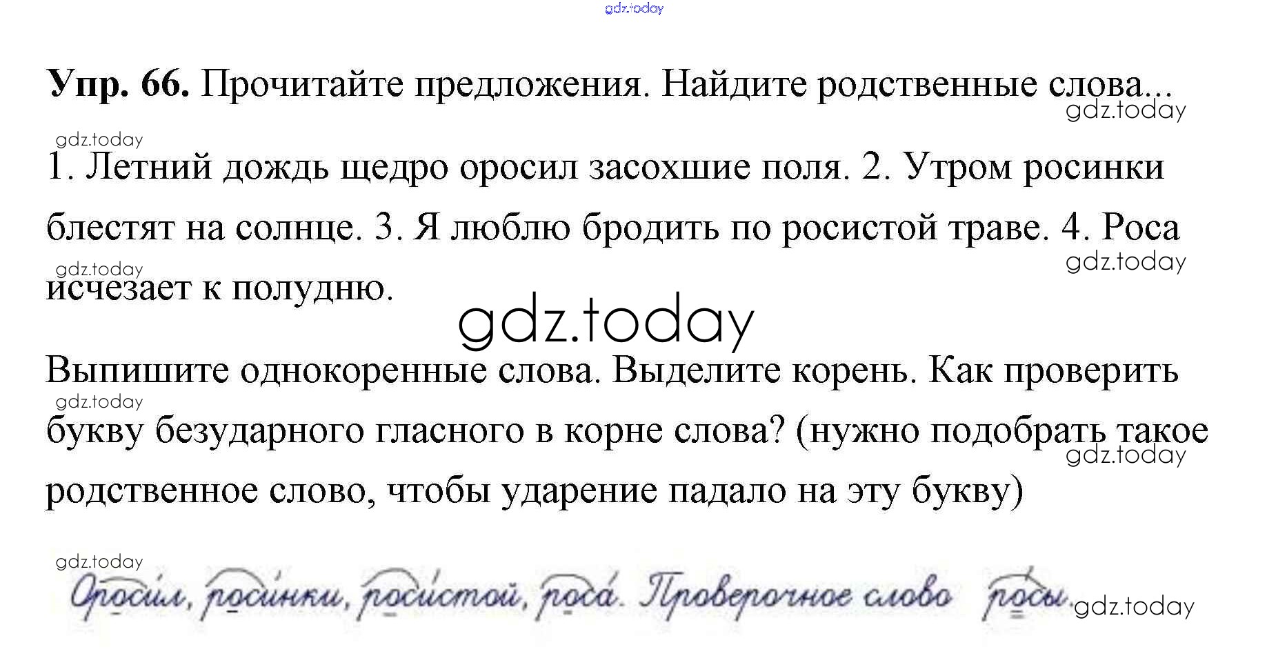 На страницах сайта gdz.today вы найдете учебный и вспомогательный материал, направленный на улучшения знаний школьной программы. ГДЗ - онлайн мир знаний Упражнения Решение. Часть 2 66 Учебнику по Русскому языку для 2 класса Климанова, Бабушкина Просвещение, Просвещение Перспектива 2015, 2020