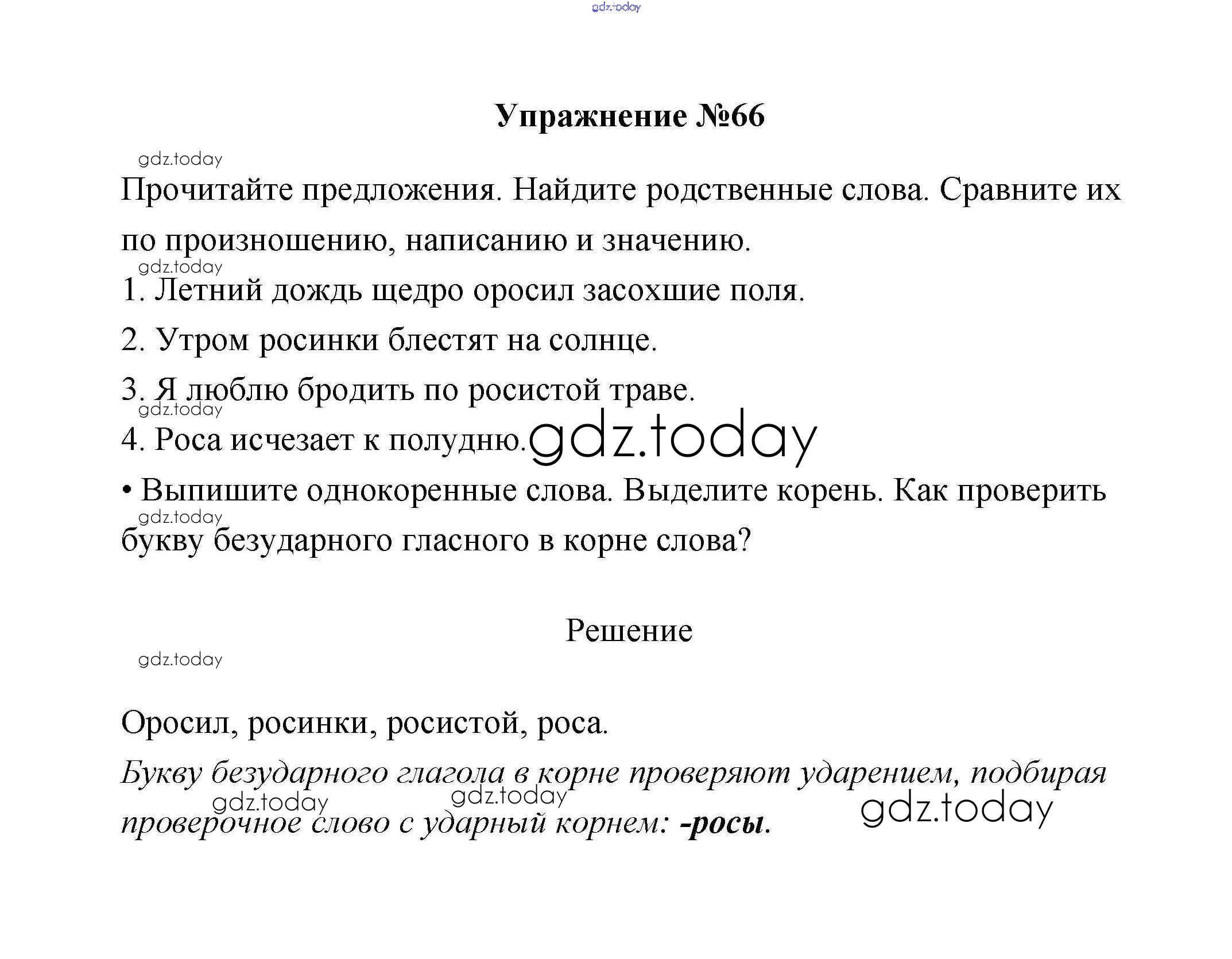 Ответы к Упражнения Решение. Часть 2 66 Учебнику по Русскому языку для 2 класса Климанова, Бабушкина Просвещение, Просвещение Перспектива 2015, 2020