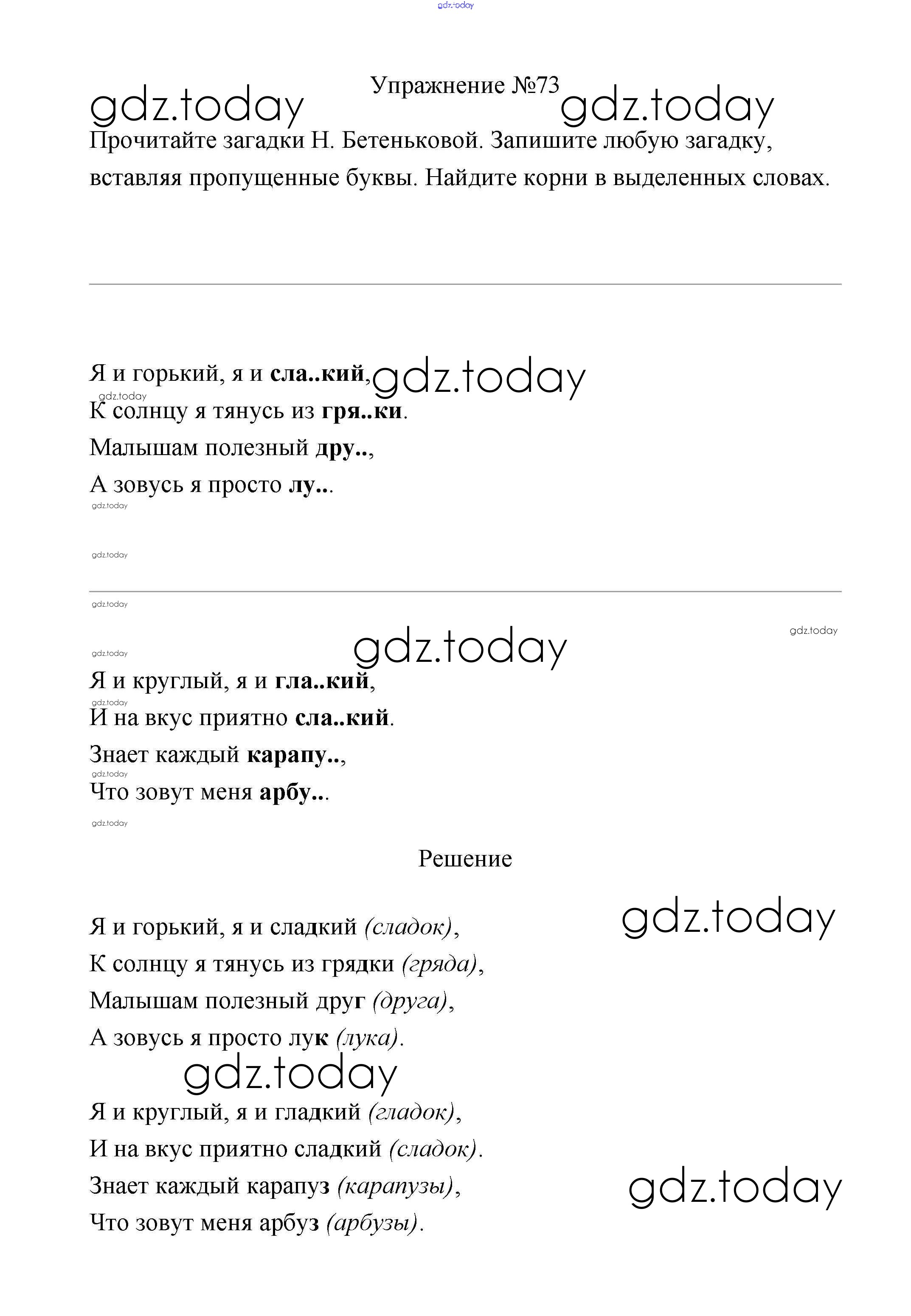 Ответы к Упражнения Решение. Часть 2 73 Учебнику по Русскому языку для 2 класса Климанова, Бабушкина Просвещение, Просвещение Перспектива 2015, 2020