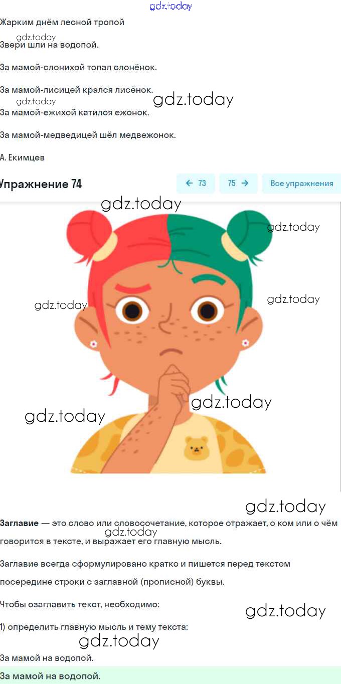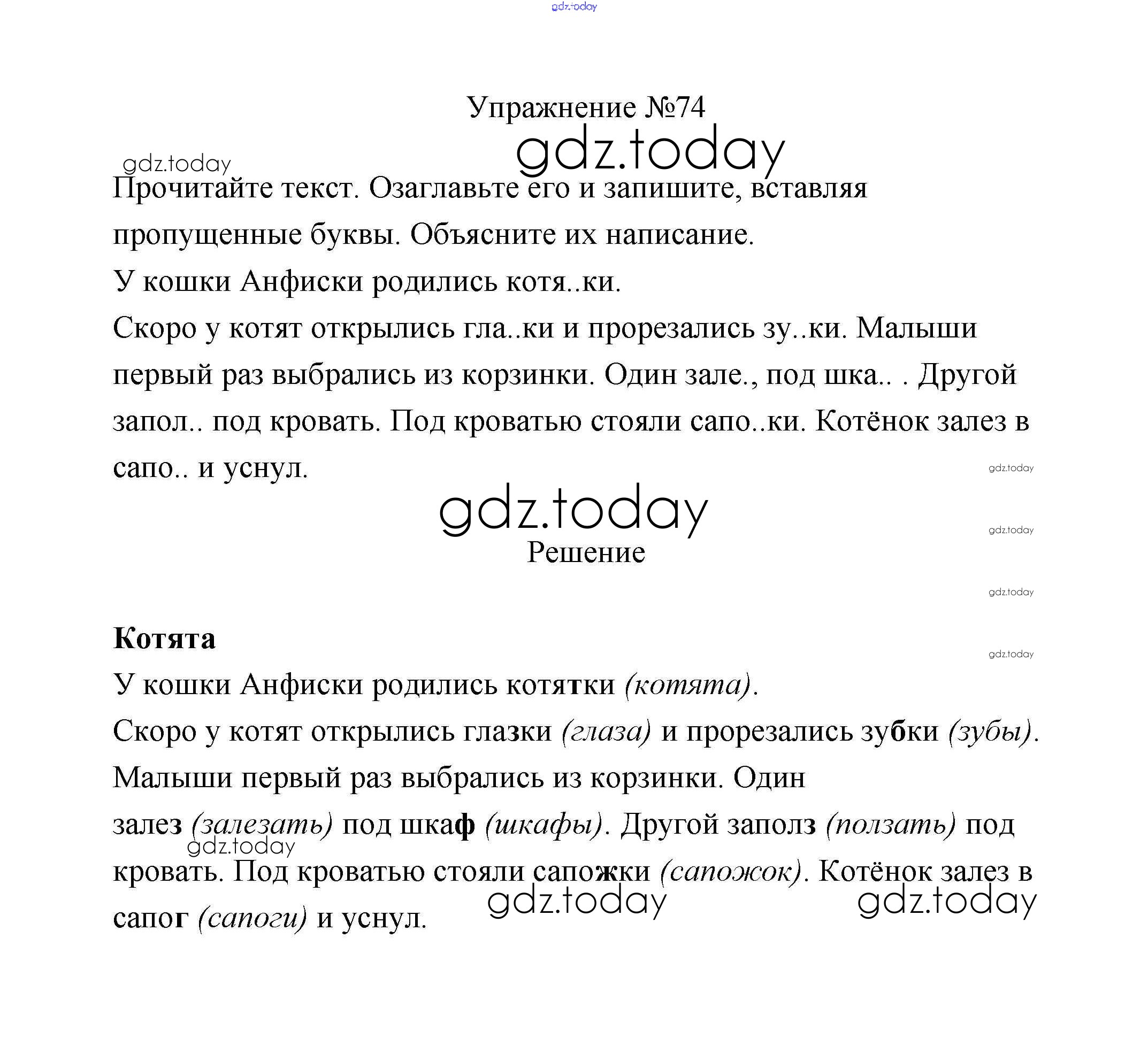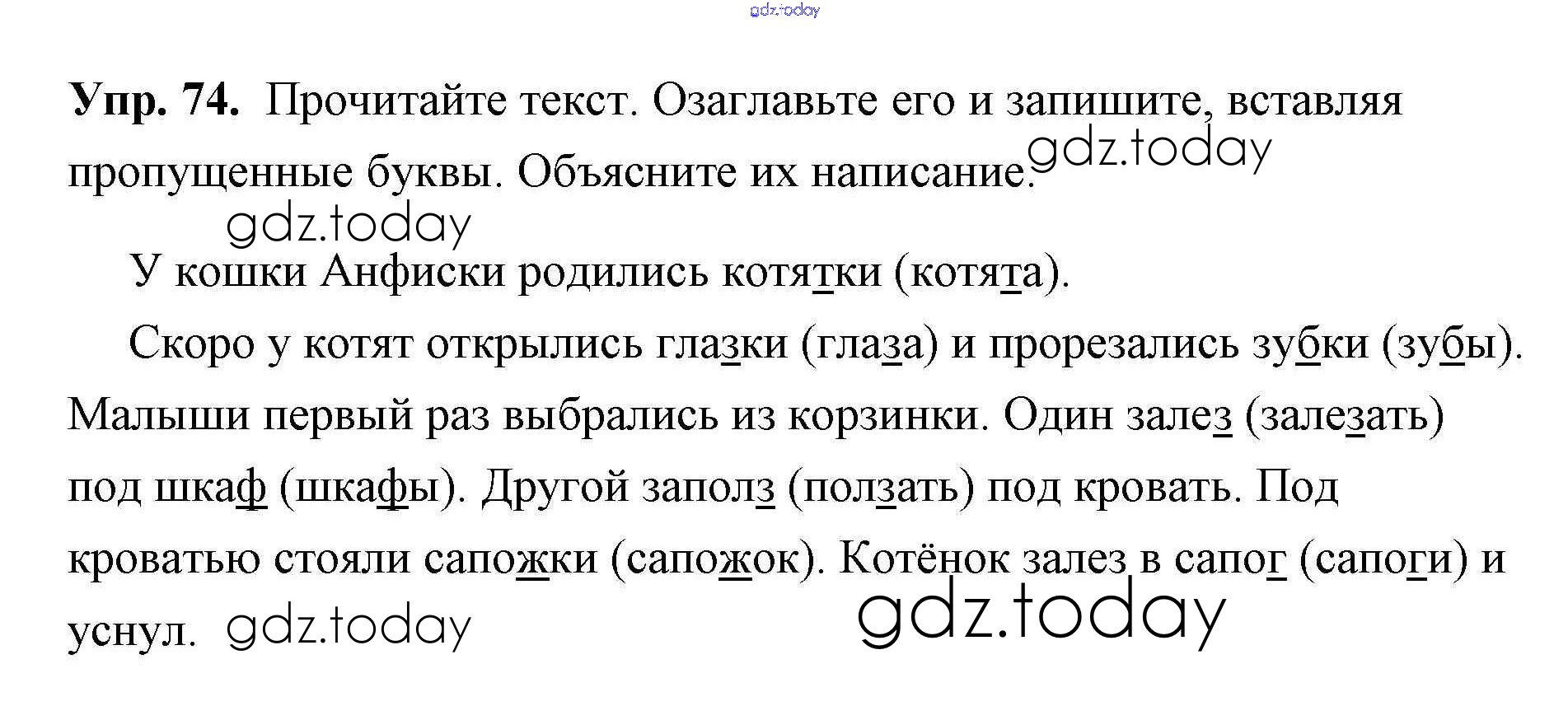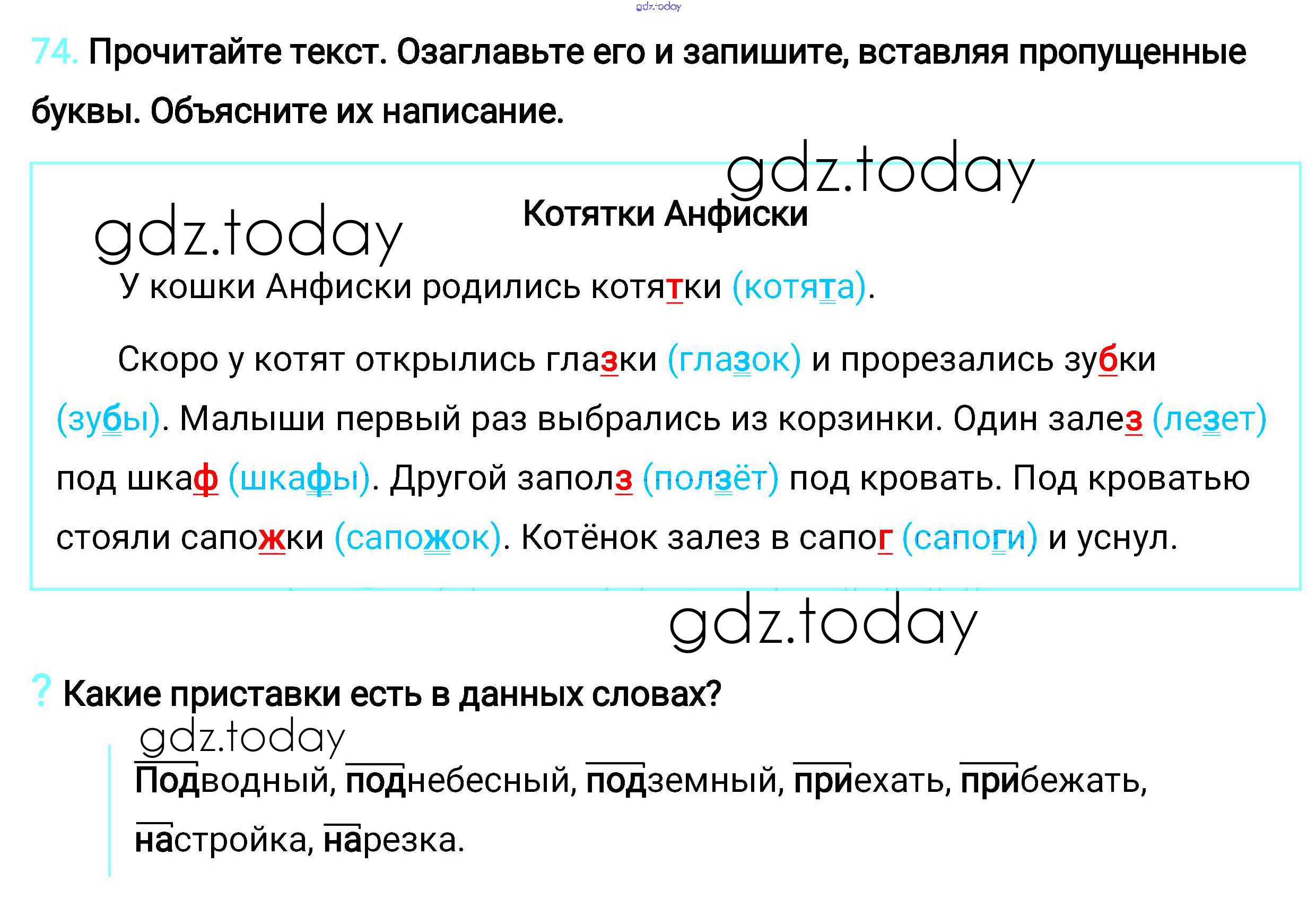 На страницах сайта gdz.today вы найдете учебный и вспомогательный материал, направленный на улучшения знаний школьной программы. ГДЗ - онлайн мир знаний Упражнения Решение. Часть 2 74 Учебнику по Русскому языку для 2 класса Климанова, Бабушкина Просвещение, Просвещение Перспектива 2015, 2020