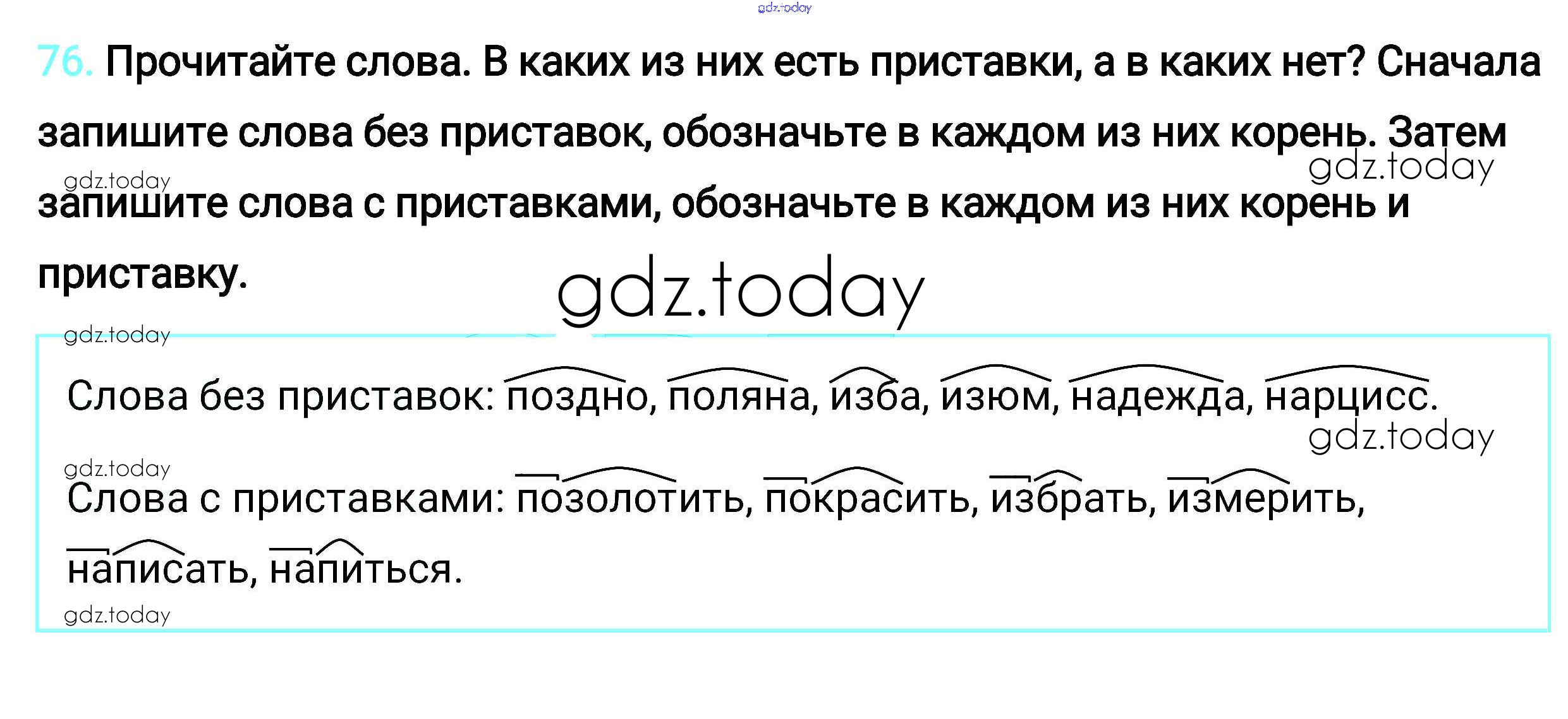 На страницах сайта gdz.today вы найдете учебный и вспомогательный материал, направленный на улучшения знаний школьной программы. ГДЗ - онлайн мир знаний Упражнения Решение. Часть 2 76 Учебнику по Русскому языку для 2 класса Климанова, Бабушкина Просвещение, Просвещение Перспектива 2015, 2020