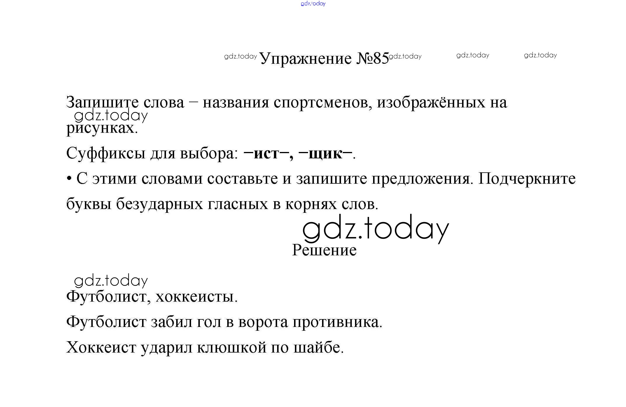 Ответы к Упражнения Решение. Часть 2 85 Учебнику по Русскому языку для 2 класса Климанова, Бабушкина Просвещение, Просвещение Перспектива 2015, 2020