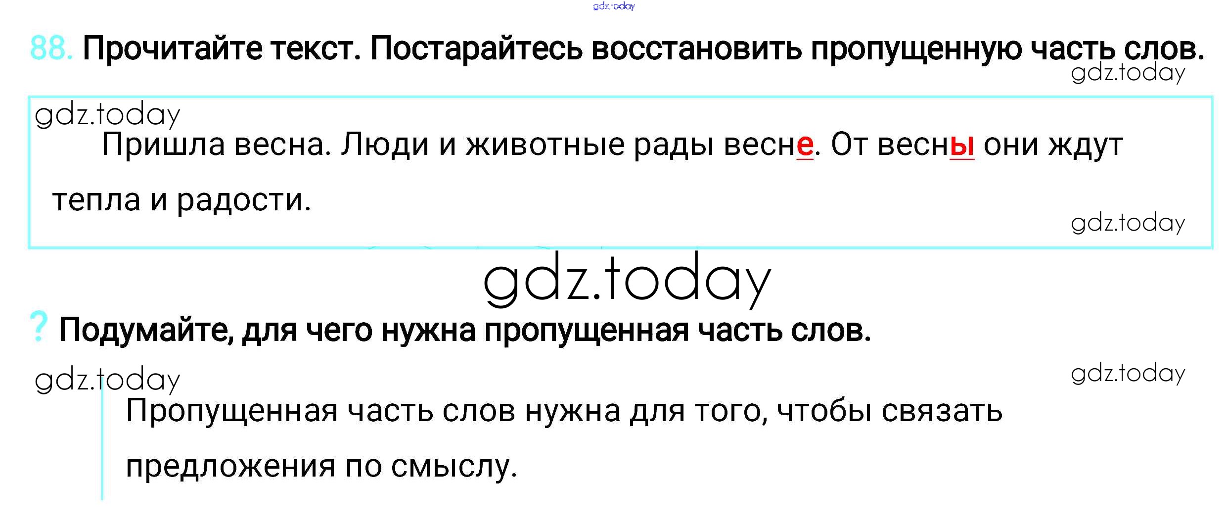 На страницах сайта gdz.today вы найдете учебный и вспомогательный материал, направленный на улучшения знаний школьной программы. ГДЗ - онлайн мир знаний Упражнения Решение. Часть 2 88 Учебнику по Русскому языку для 2 класса Климанова, Бабушкина Просвещение, Просвещение Перспектива 2015, 2020