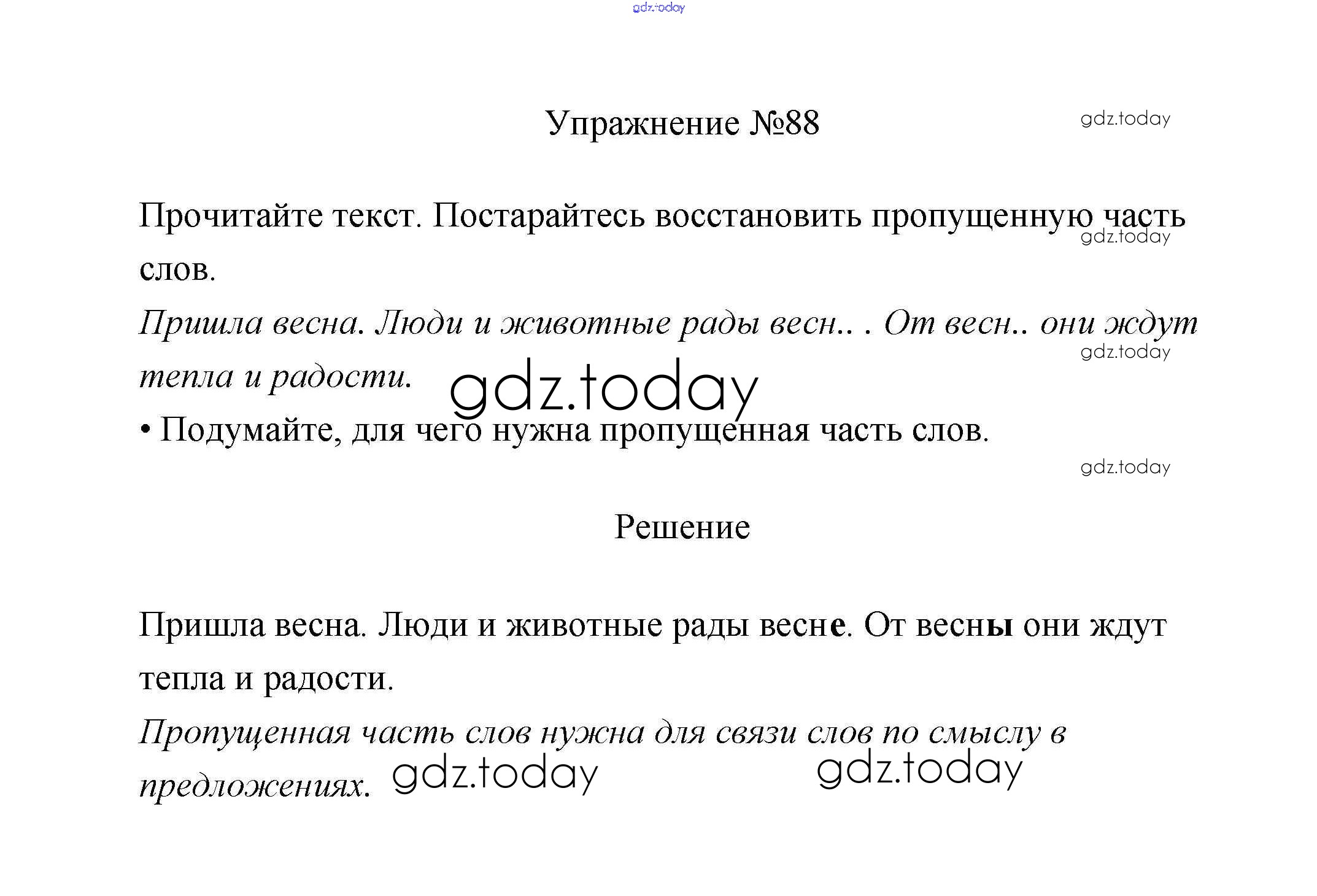 Ответы к Упражнения Решение. Часть 2 88 Учебнику по Русскому языку для 2 класса Климанова, Бабушкина Просвещение, Просвещение Перспектива 2015, 2020