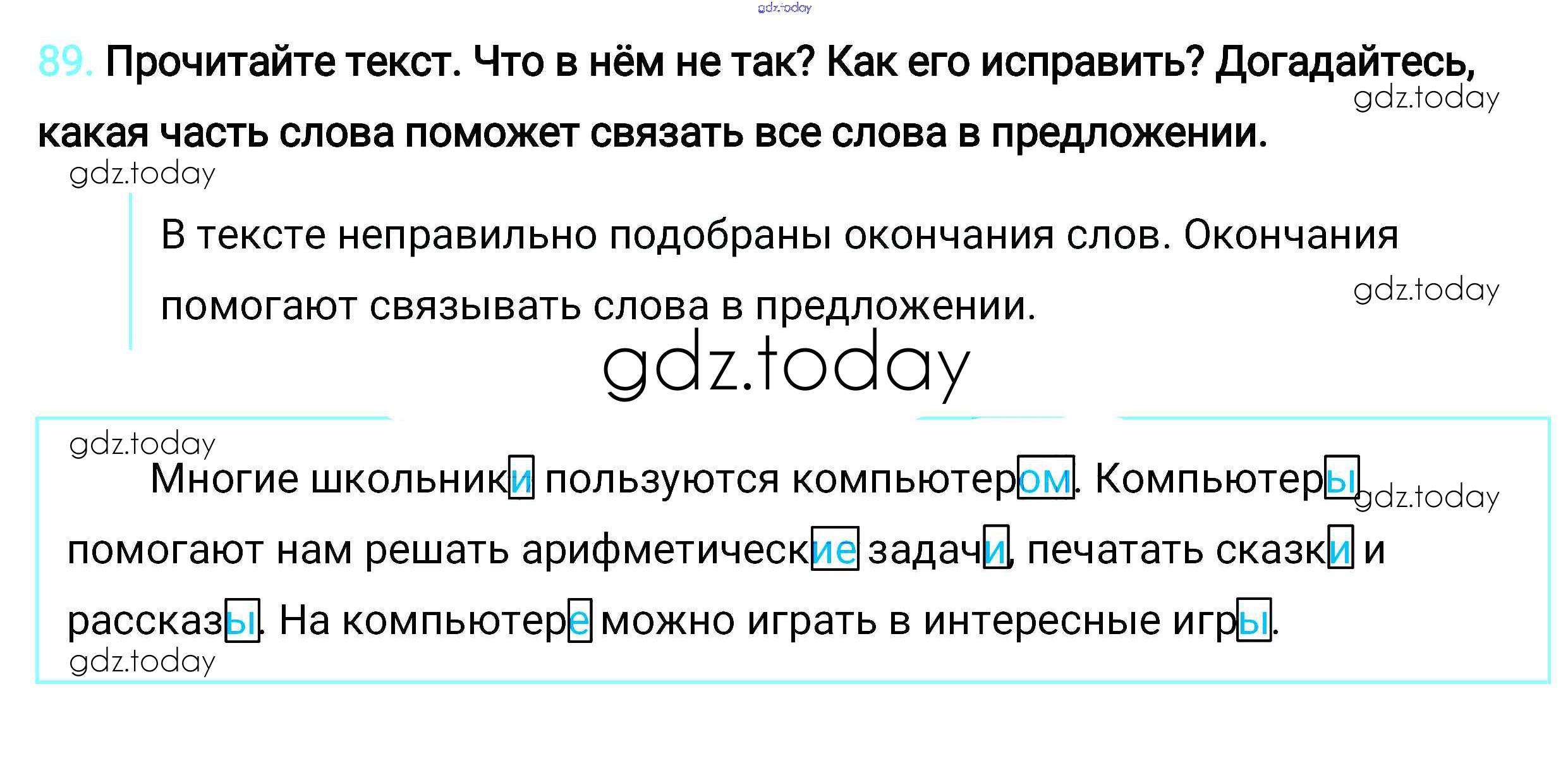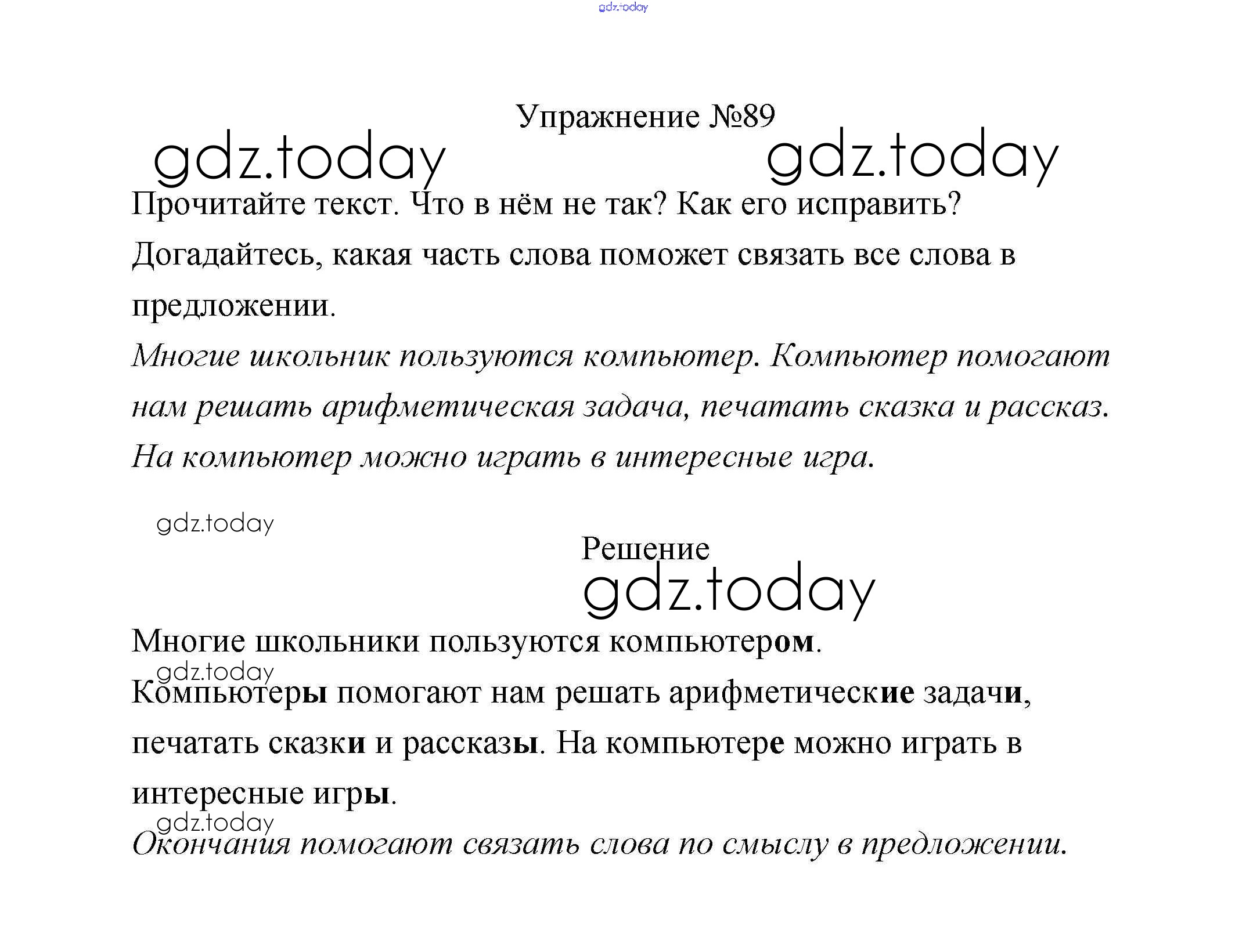 На страницах сайта gdz.today вы найдете учебный и вспомогательный материал, направленный на улучшения знаний школьной программы. ГДЗ - онлайн мир знаний Упражнения Решение. Часть 2 89 Учебнику по Русскому языку для 2 класса Климанова, Бабушкина Просвещение, Просвещение Перспектива 2015, 2020