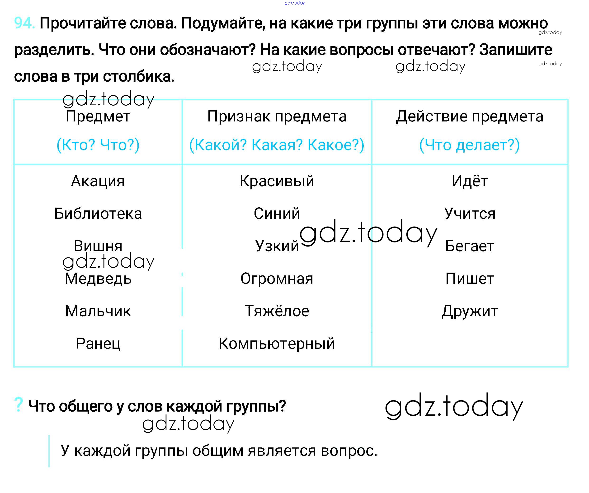На страницах сайта gdz.today вы найдете учебный и вспомогательный материал, направленный на улучшения знаний школьной программы. ГДЗ - онлайн мир знаний Упражнения Решение. Часть 2 94 Учебнику по Русскому языку для 2 класса Климанова, Бабушкина Просвещение, Просвещение Перспектива 2015, 2020
