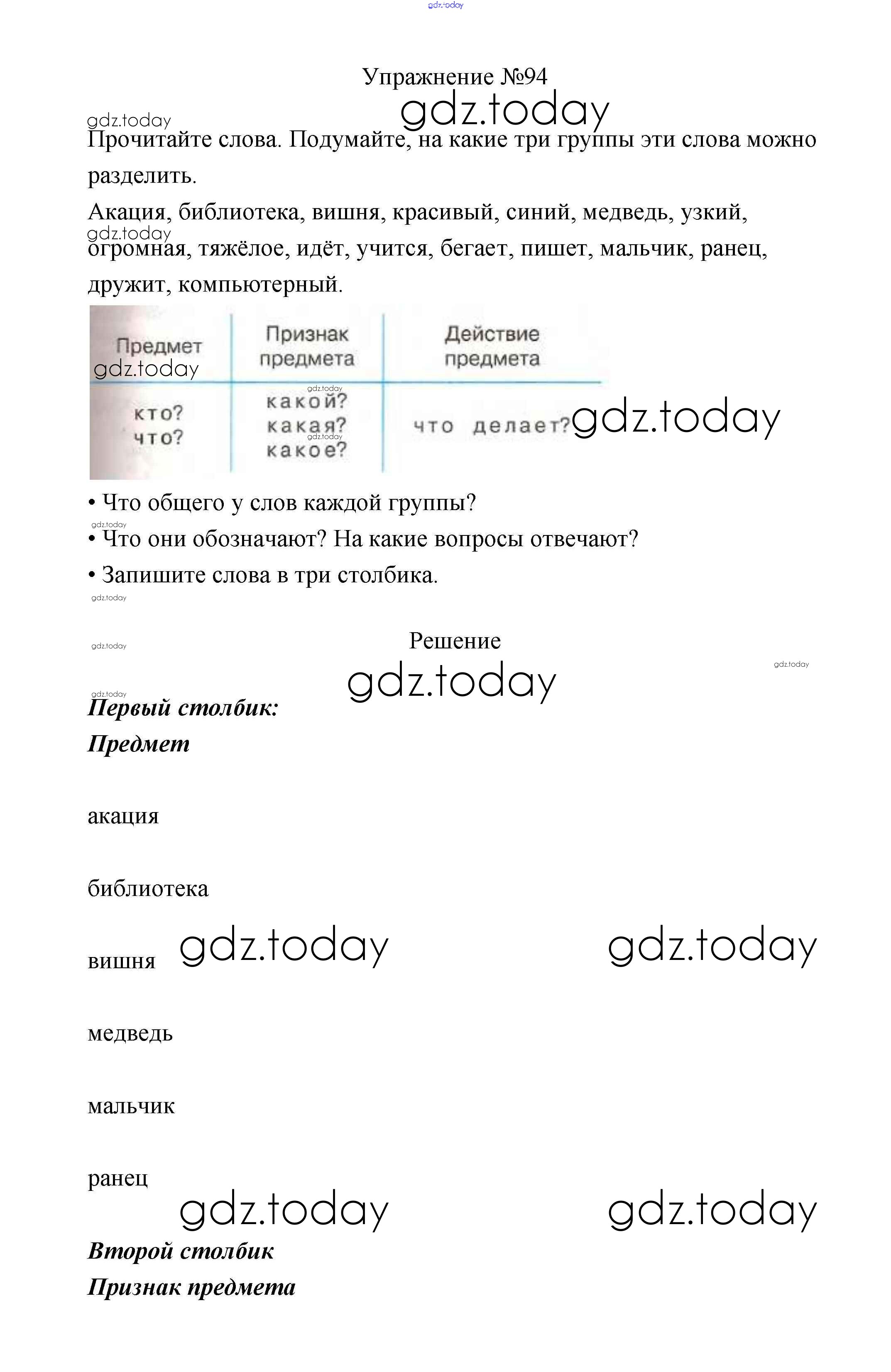 Ответы к Упражнения Решение. Часть 2 94 Учебнику по Русскому языку для 2 класса Климанова, Бабушкина Просвещение, Просвещение Перспектива 2015, 2020