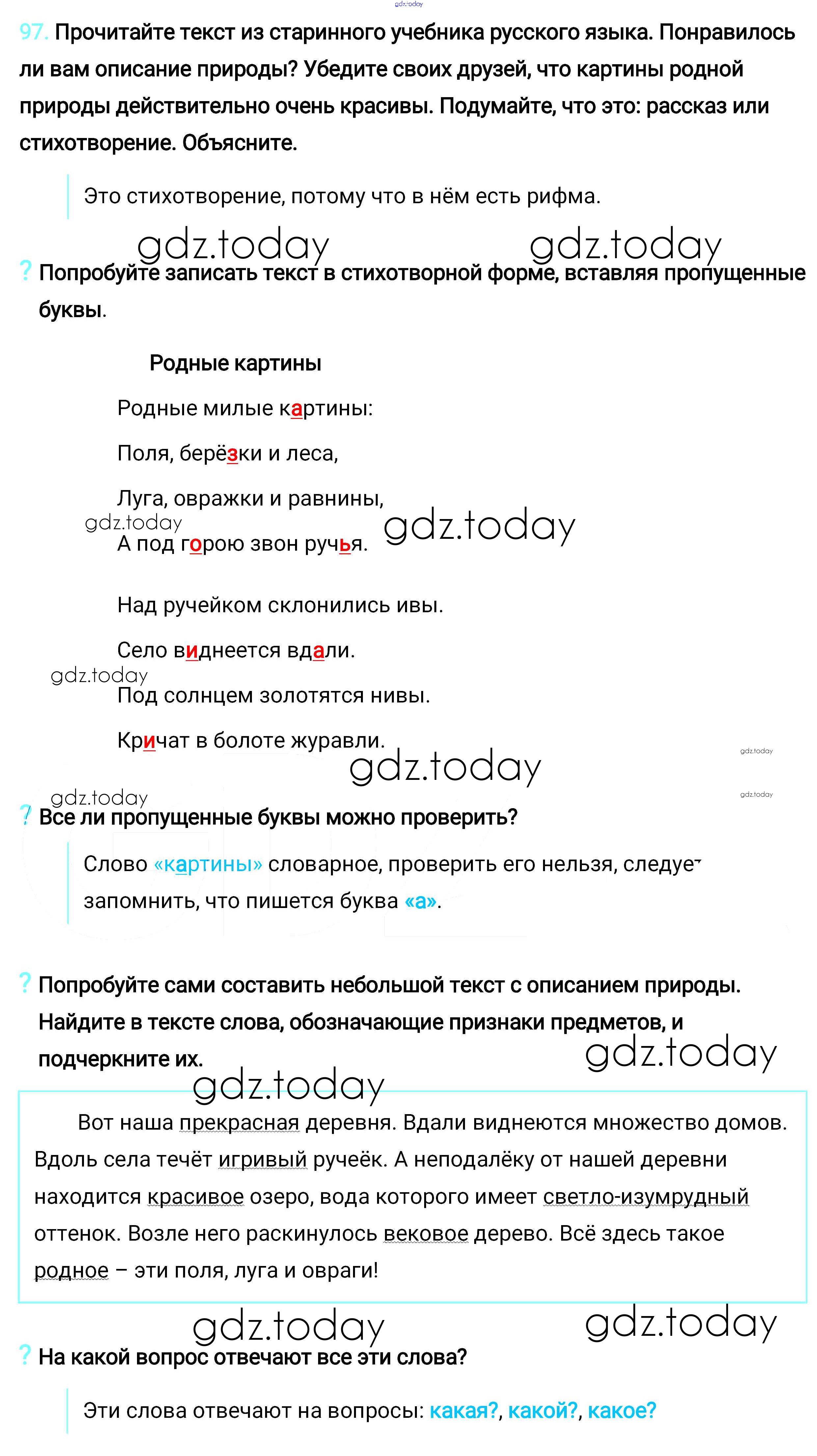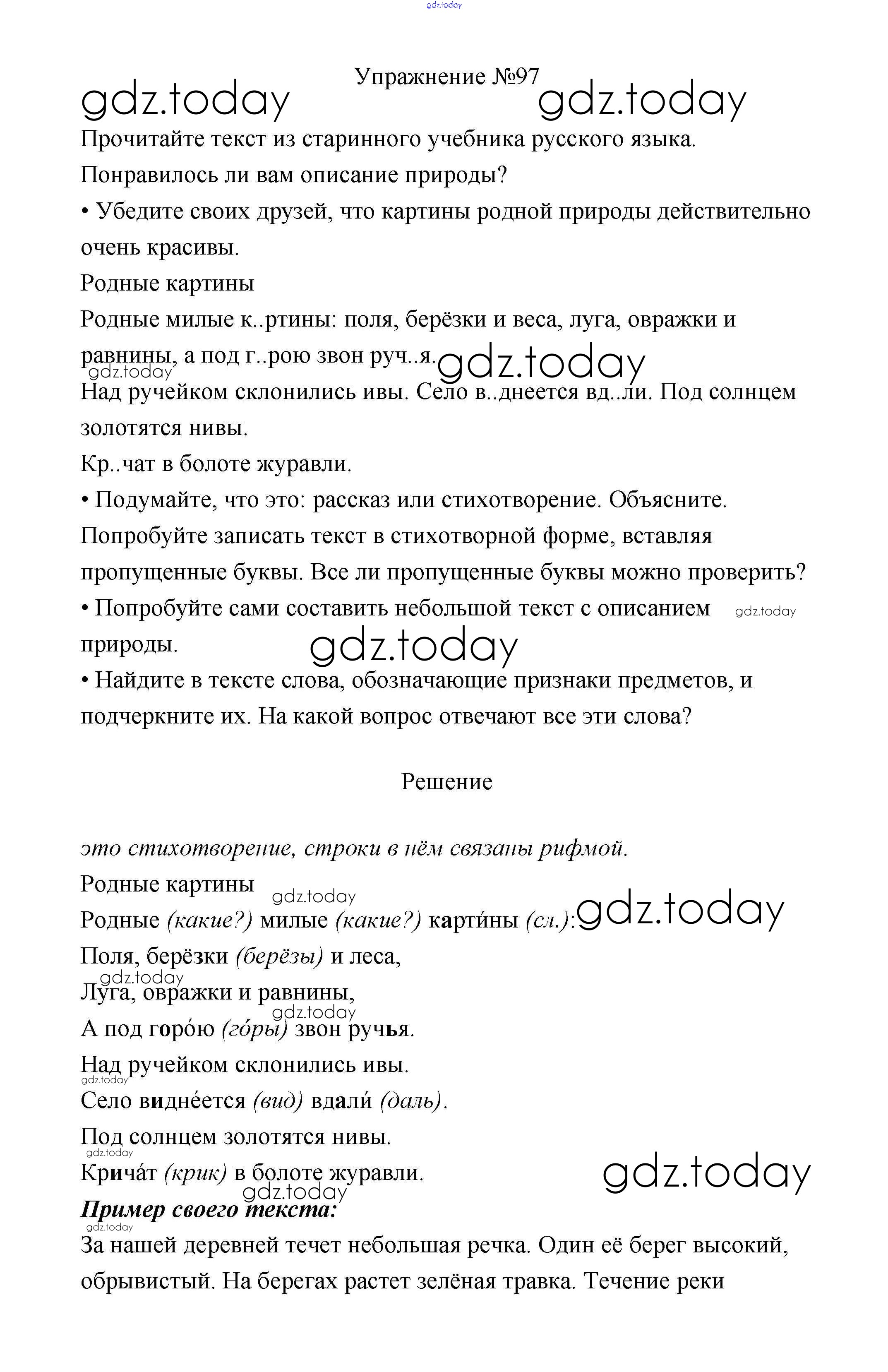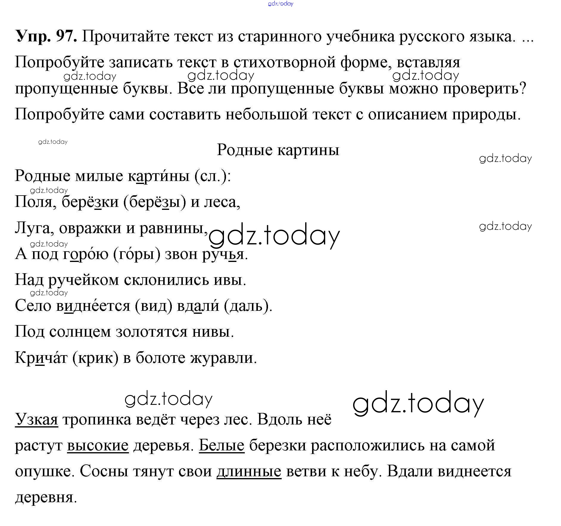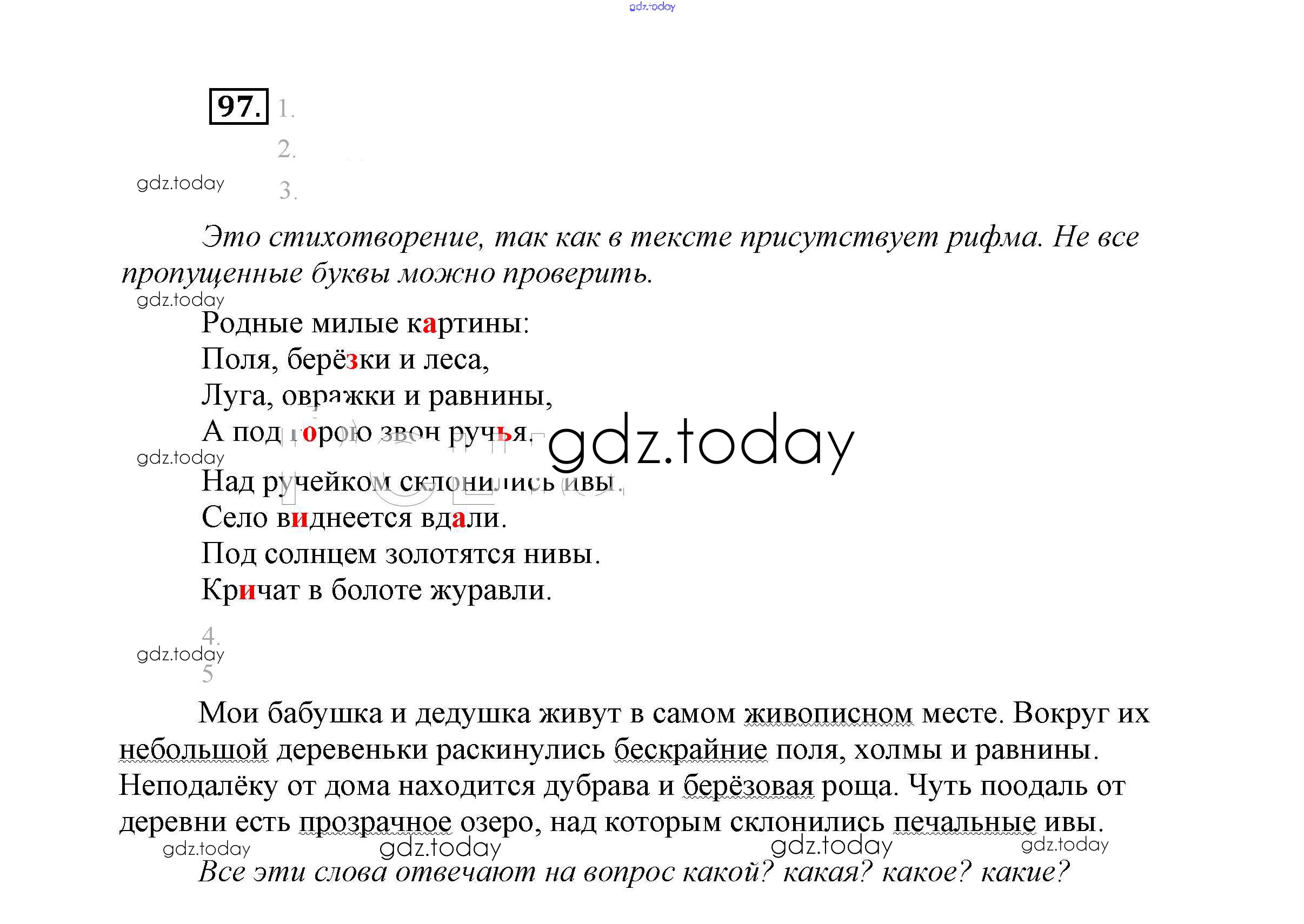 На страницах сайта gdz.today вы найдете учебный и вспомогательный материал, направленный на улучшения знаний школьной программы. ГДЗ - онлайн мир знаний Упражнения Решение. Часть 2 97 Учебнику по Русскому языку для 2 класса Климанова, Бабушкина Просвещение, Просвещение Перспектива 2015, 2020