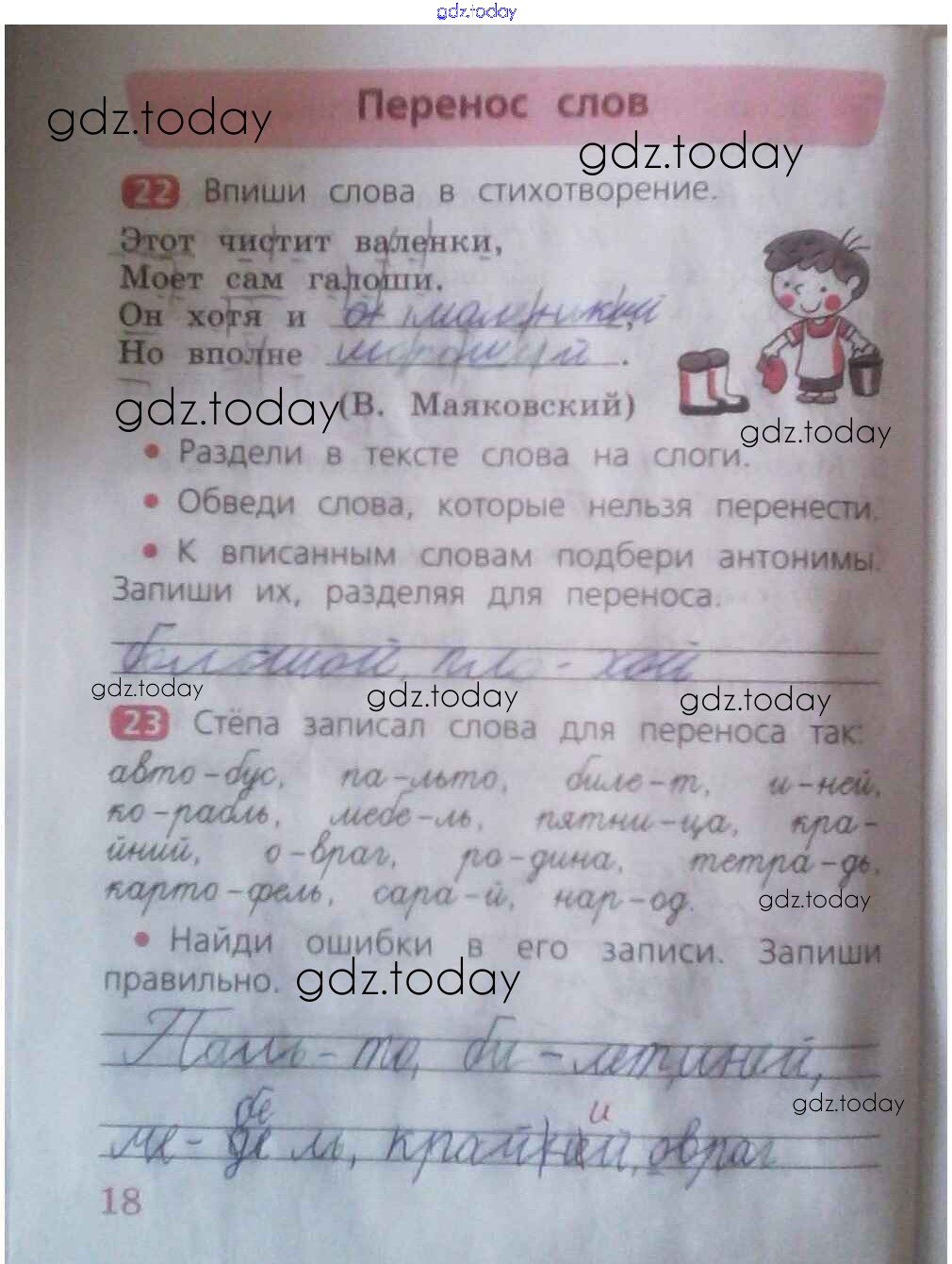 На страницах сайта gdz.today вы найдете учебный и вспомогательный материал, направленный на улучшения знаний школьной программы. ГДЗ - онлайн мир знаний Решение к части 1. Страницы 18 Рабочей тетради по Русскому языку для 2 класса Песняева, Анащенкова Просвещение 2020