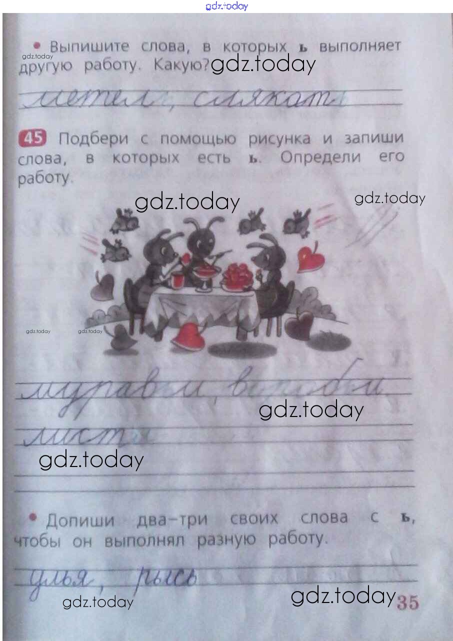 На страницах сайта gdz.today вы найдете учебный и вспомогательный материал, направленный на улучшения знаний школьной программы. ГДЗ - онлайн мир знаний Решение к части 1. Страницы 35 Рабочей тетради по Русскому языку для 2 класса Песняева, Анащенкова Просвещение 2020