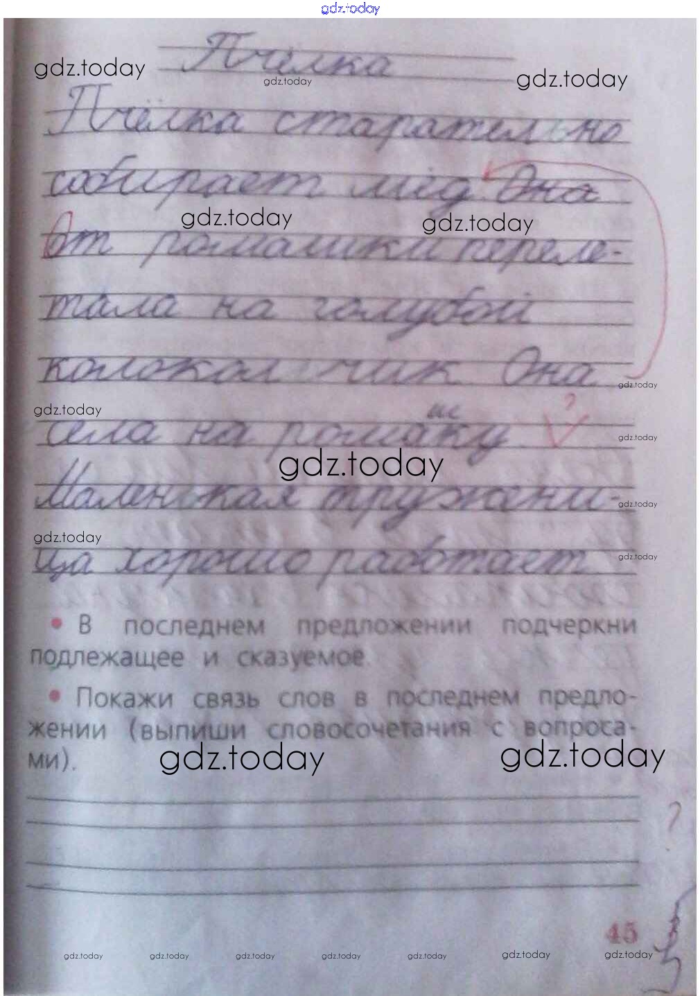 На страницах сайта gdz.today вы найдете учебный и вспомогательный материал, направленный на улучшения знаний школьной программы. ГДЗ - онлайн мир знаний Решение к части 1. Страницы 45 Рабочей тетради по Русскому языку для 2 класса Песняева, Анащенкова Просвещение 2020