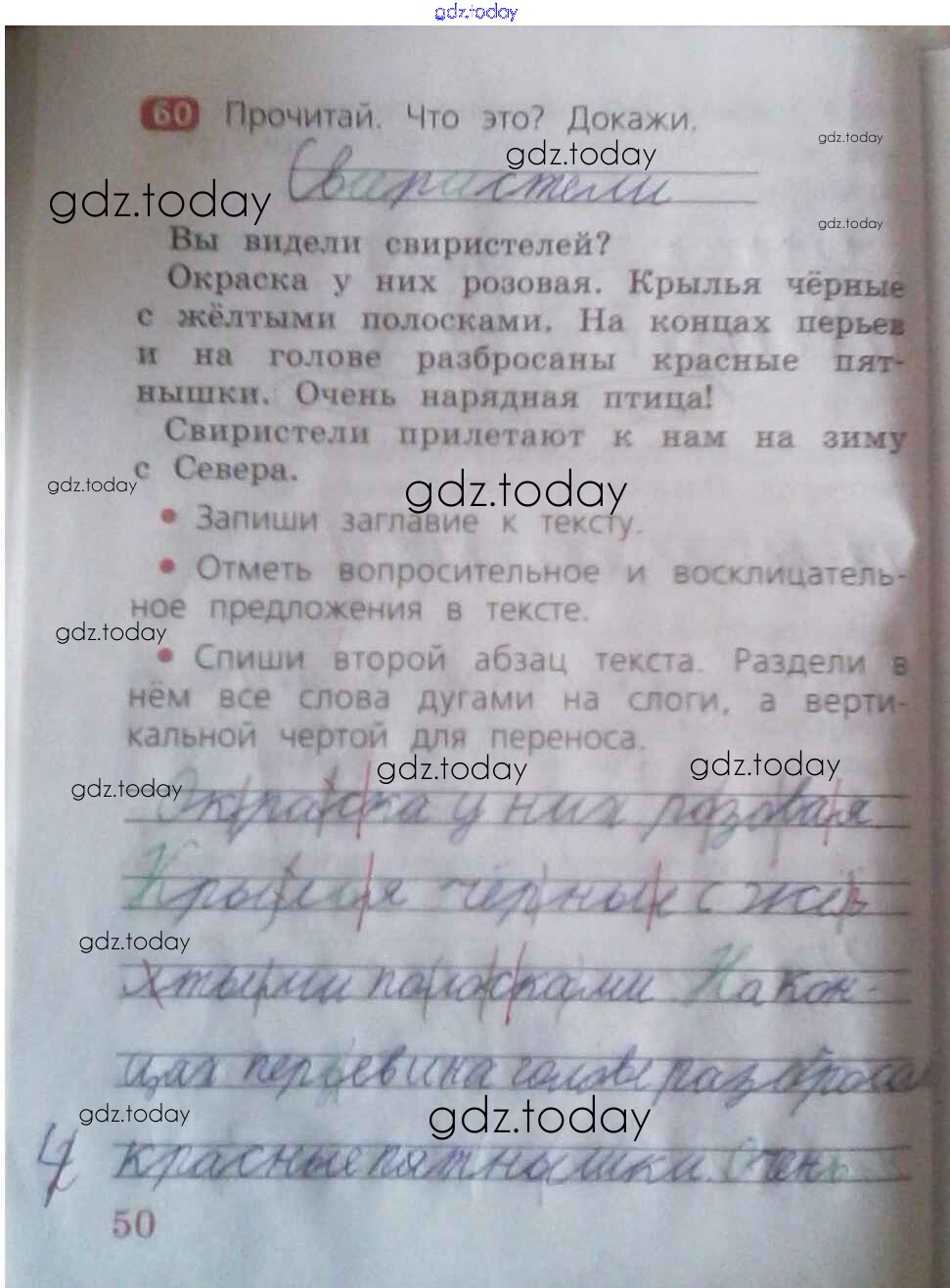 На страницах сайта gdz.today вы найдете учебный и вспомогательный материал, направленный на улучшения знаний школьной программы. ГДЗ - онлайн мир знаний Решение к части 1. Страницы 50 Рабочей тетради по Русскому языку для 2 класса Песняева, Анащенкова Просвещение 2020