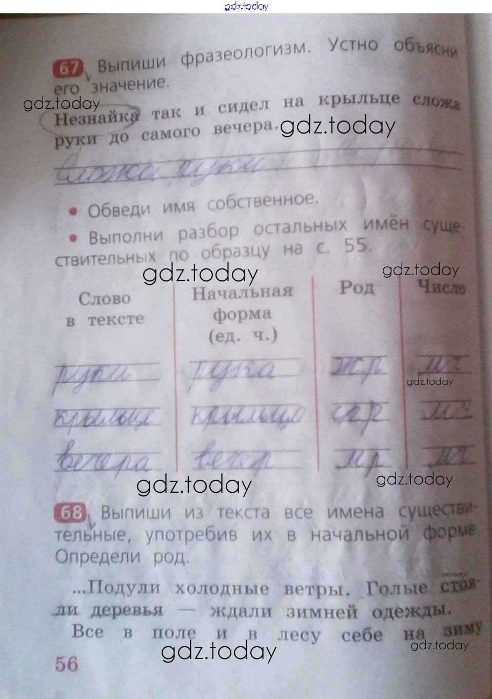 На страницах сайта gdz.today вы найдете учебный и вспомогательный материал, направленный на улучшения знаний школьной программы. ГДЗ - онлайн мир знаний Решение к части 1. Страницы 56 Рабочей тетради по Русскому языку для 2 класса Песняева, Анащенкова Просвещение 2020